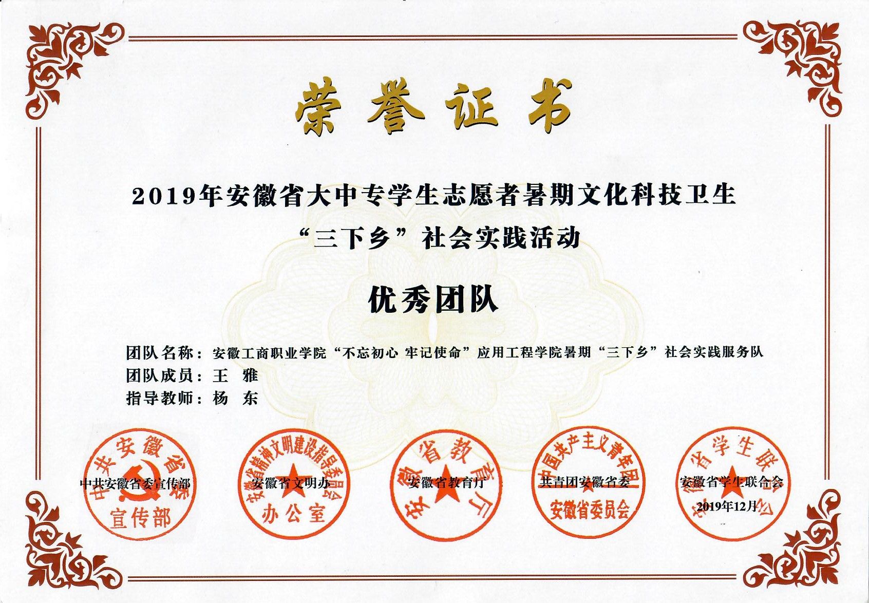 工作室荣获 2019年安徽省大中专学生志愿者暑期文化科技卫生“三下乡”社会实践活动优秀团队
