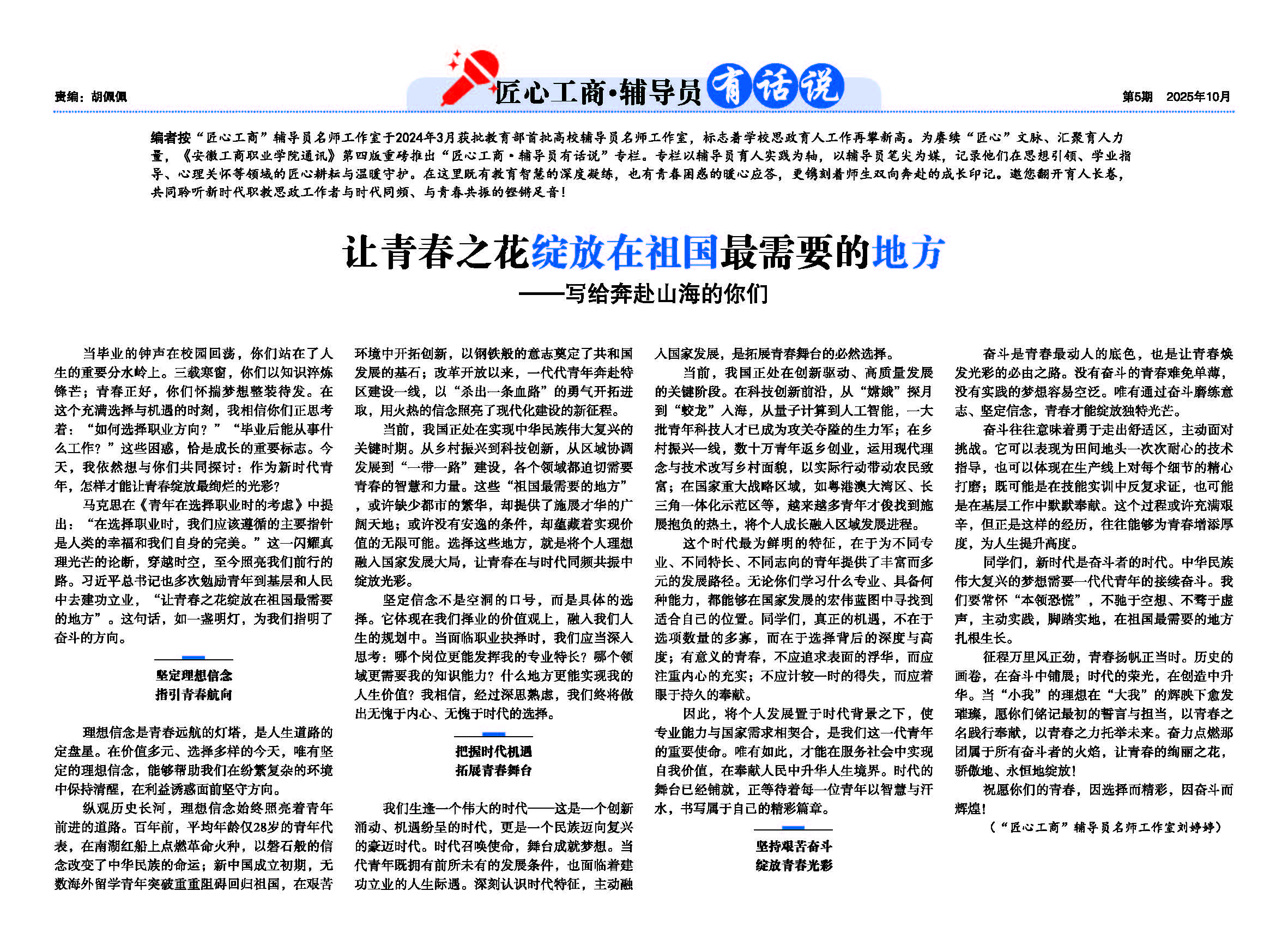 【辅导员有话说】第5期 让青春之花绽放在祖国最需要的地方
