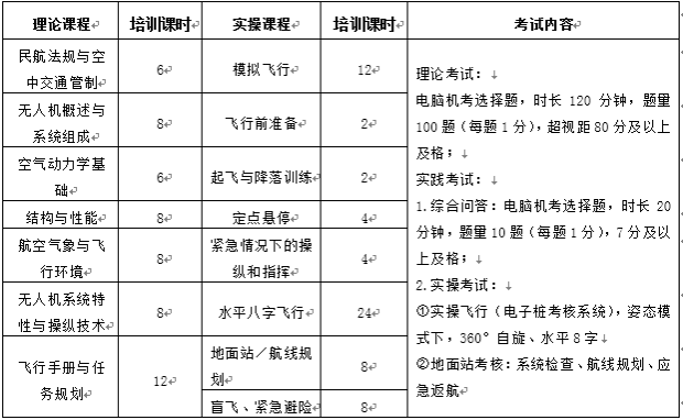 (五)在培训课程完成后,组织参加理论和实践考试,考试合格者将颁发中国民用航空局颁发的“民用无人驾驶航空器操控员电子执照”。