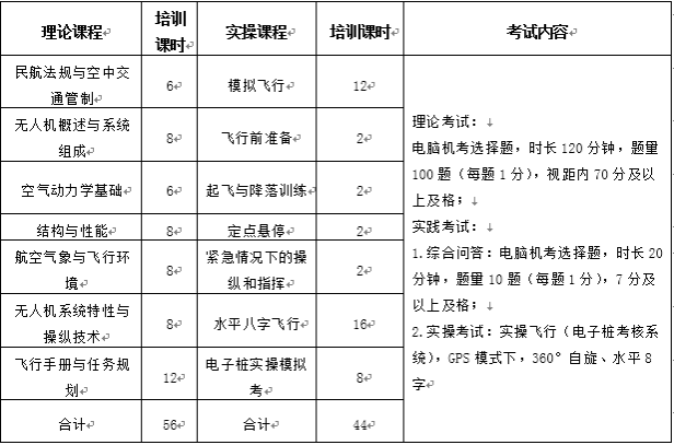 (一)多旋翼视距内驾驶员课程表及考试内容
