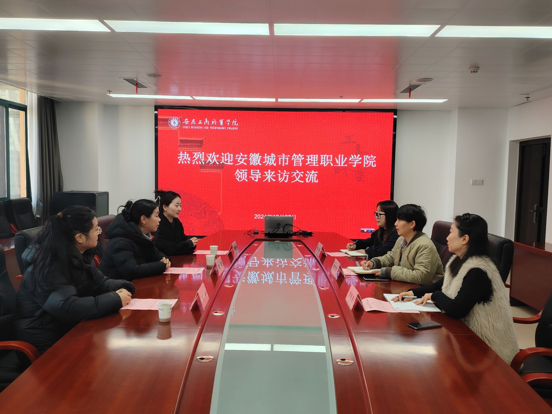 12月27日上午,安徽城市管理职业学院公共教学部办公室主任张莉一行来我院考察交流,我院副院长陈清清在综合楼四号会议室进行了热情接待,部门相关工作人员参加了接待。