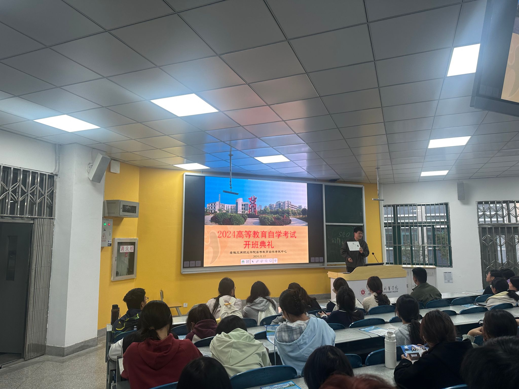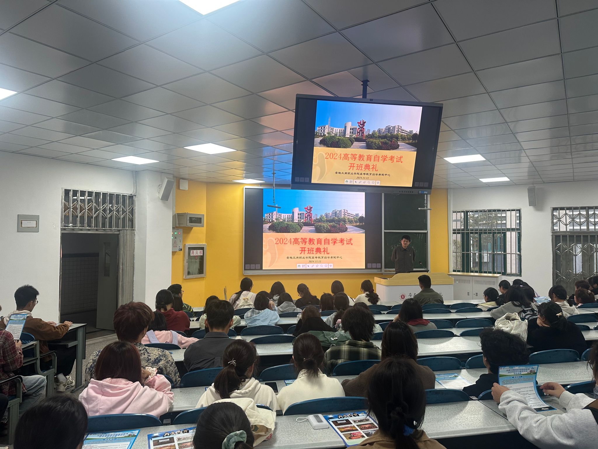 我院2024级自考助学班于11月11日下午在八号多媒体举行开班典礼,24级近130名参加自考助学的学生参加了开班典礼。