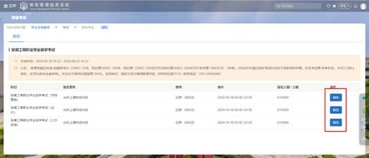 1、登录智慧教务系统。登录网址为:https://jwxt.ahbvc.edu.cn/student/login。(忘记密码请咨询各二级学院教务科)。可通过等级考试菜单,查看到当前可报名的考试批次,点击报名按钮;