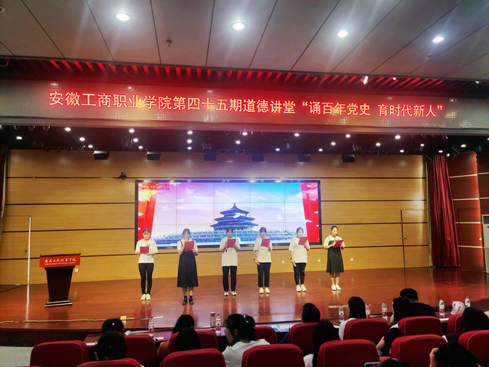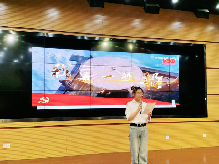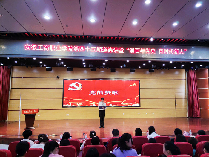 活动中,学生预备党员们带来的红色经典诵读《追溯七月》、《党的赞歌》等作品,历史的画卷在他们的声音和视频中被重现,令人备受鼓舞,满怀敬仰之情,也让在座的师生党员更加坚定理想信念。而后入党积极分子们以《我是一艘船》、《红色家书》等为视角切入讲述了一个又一个感人的历史故事,他们的光辉典范如熠熠生辉的指路明灯,催人奋进。最后此次道德讲堂在歌曲《万疆》中结束,歌声引领大家学习党的百年奋斗征程,让在场的师生观众沉浸其中,纷纷表示要珍惜现在来之不易的美好生活,重忆初心使命,激发奋进动力。
