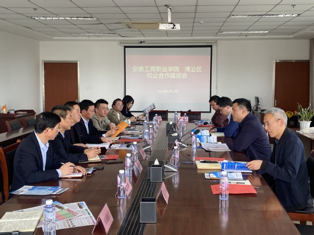 湾沚区相关领导介绍了区经济发展情况、人才政策、开发区企业人才需求状况。10家企业代表分别介绍了企业情况、用人需求和校企合作现状,并就高素质技能型人才培养提出建议。