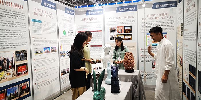 5月19至20日,由全国职业高等院校校长联席会议主办的高水平学校与专业群建设研讨会在合肥滨湖国际会展中心举办。会议以“深化改革 创新发展 服务中国式现代化”为主题,同期举办职业教育建设成果展。我校“踔厉奋发安工商”主题展在安徽职业教育建设成果展中亮相。党委副书记、院长李雪,党委委员、副院长陈章奇及相关部门负责人出席会议并前往展馆参观,与进行现场作品展示的我校陶艺大师马业长和同学们交流,并勉励参展师生积极展示学校特色,同时向参展院校学习,交流经验。