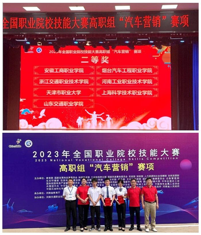 8月22日至25日全国职业院校技能大赛“汽车营销”赛项在河南交通职业技术学院举行,来自全国各省、自治区、直辖市和新疆生产建设兵团的68支参赛队参加比赛。管理学院由汪锋、吴风波两位老师指导,李旭、张雨悦组成的团队获得学生组赛项二等奖。