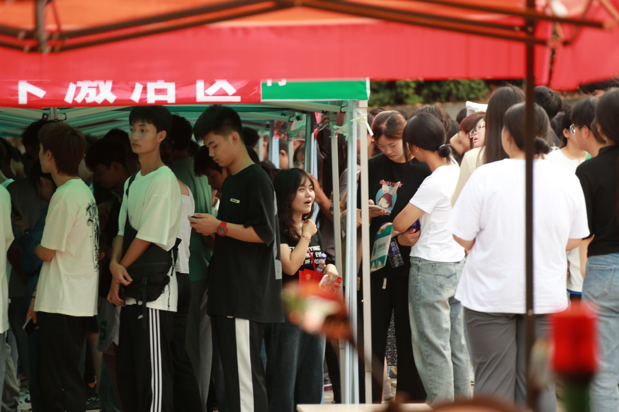 创意打卡墙、行李存放处、家长接待站、志愿者服务台、绿色通道……在学生食堂的集中迎新点,各学院精心准备的便捷服务和丰富多彩的迎新活动,帮助同学们消除陌生感,快速融入学校。