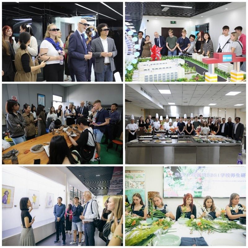 座谈结束后,费巴格一行先后参观了人工智能与虚仿中心,观摩了陶器制作工艺,体验了中国酒水文化,制作、品尝了中式面点,参与了跨境电商和新零售中英文直播活动,欣赏了庐阳校区VISION艺术展,在插花互动中感受到了花艺之美。