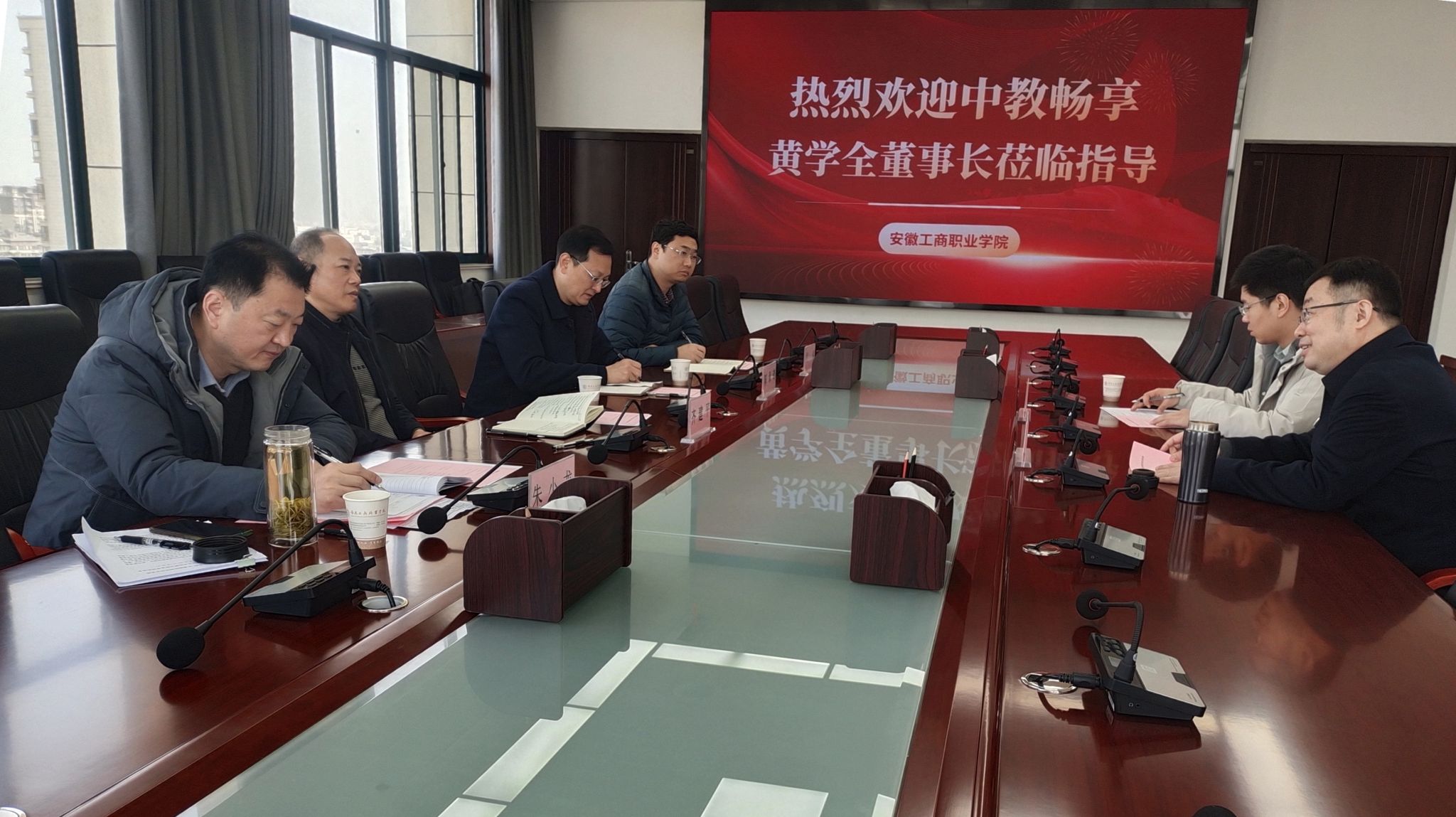 12月6日上午中教畅享(北京)科技有限公司董事长黄学全一行到我校进行考察调研。校党委书记齐建平,校党委委员、副校长陈章奇,校党委委员、发展规划与质量管理处处长、管理学院院长朱小龙,管理学院教务科科长倪伟参加调研座谈会。