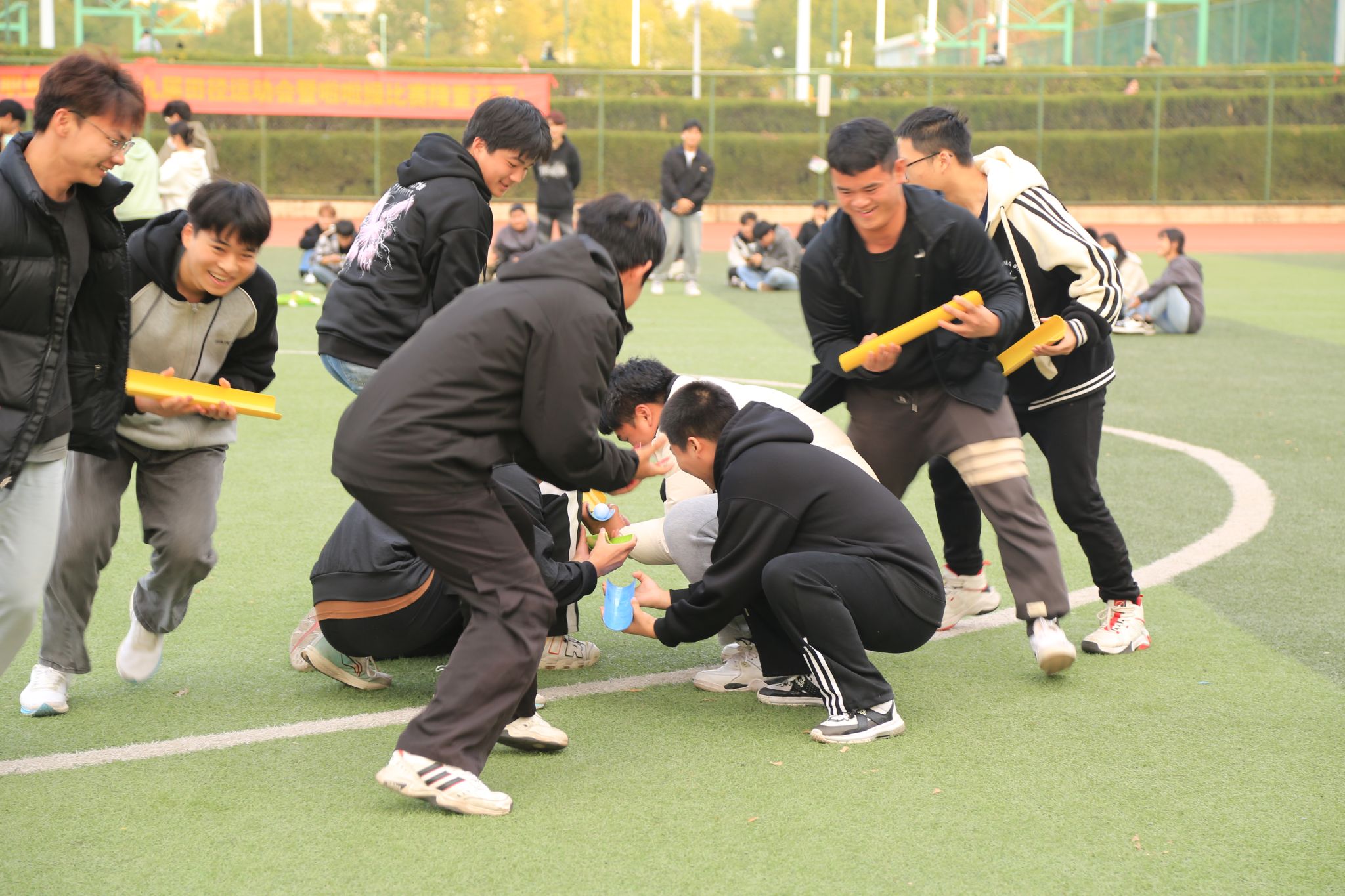2023年12月9日,学员们共同参加了户外素质拓展,他们在操场上尽情挥洒青春激情,展现青春风采。团队建设、团队风采展示和“能量传输”等实践活动,引导同学们感悟团队精神,凝聚团队力量,培养了团队合作意识与创新意识。