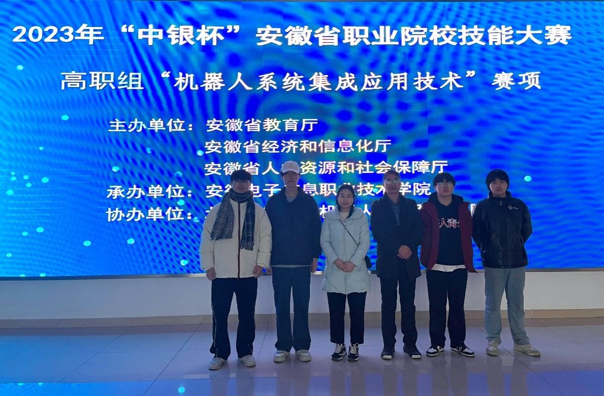 2023年12月28-29日,安徽省职业院校技能大赛“机器人系统集成应用技术”赛项在安徽电子信息职业技术学院举行。我校王嘉豪、郭子豪、陈家旺、李浩宇组成的参赛队经过激烈角逐,最终以优异的成绩从全省30支代表队脱颖而出,分别获得一等奖、二等奖。智能制造与汽车学院张传俊、张春芳、曹子沛、沐娟担任教师指导团队。