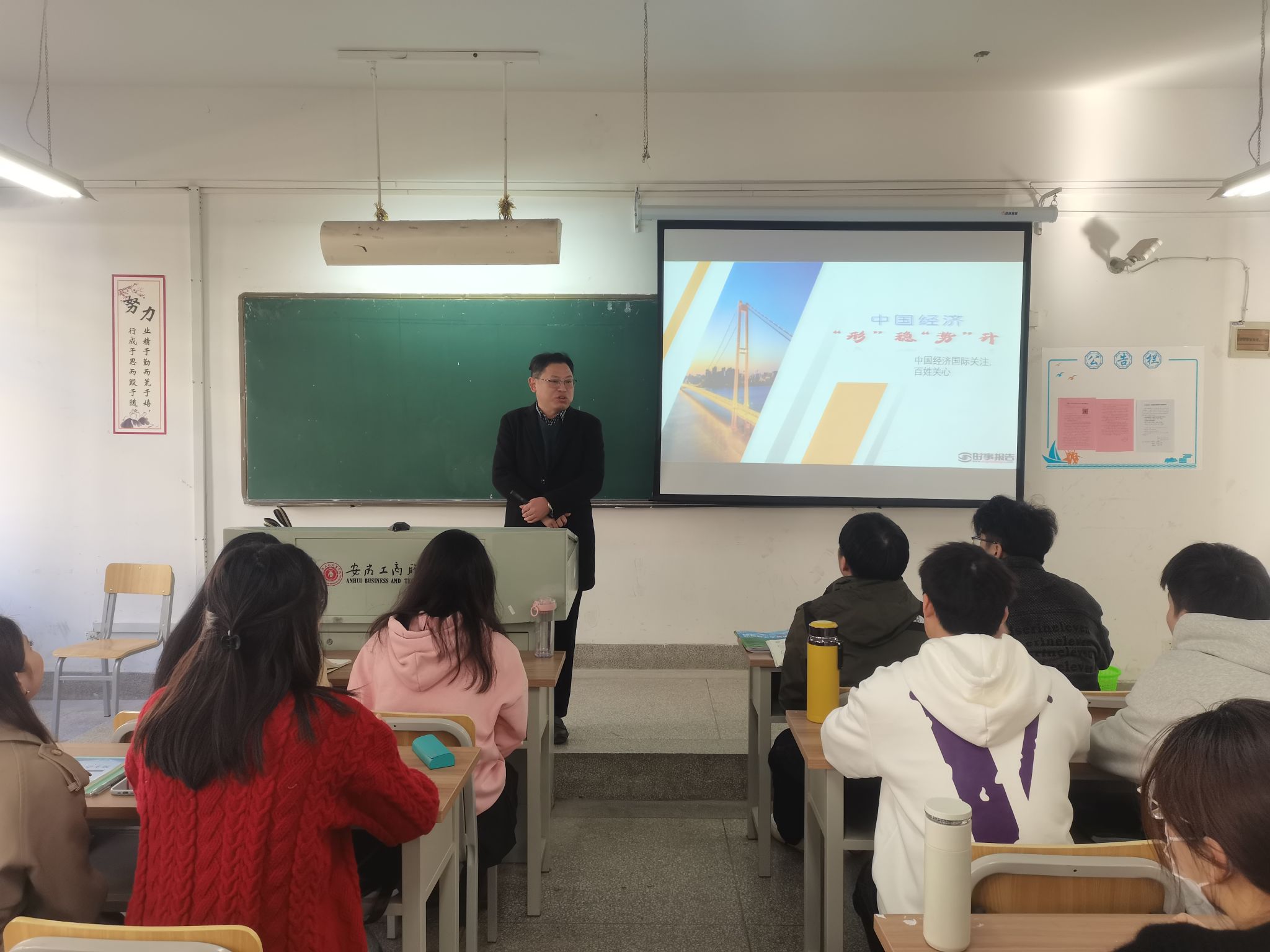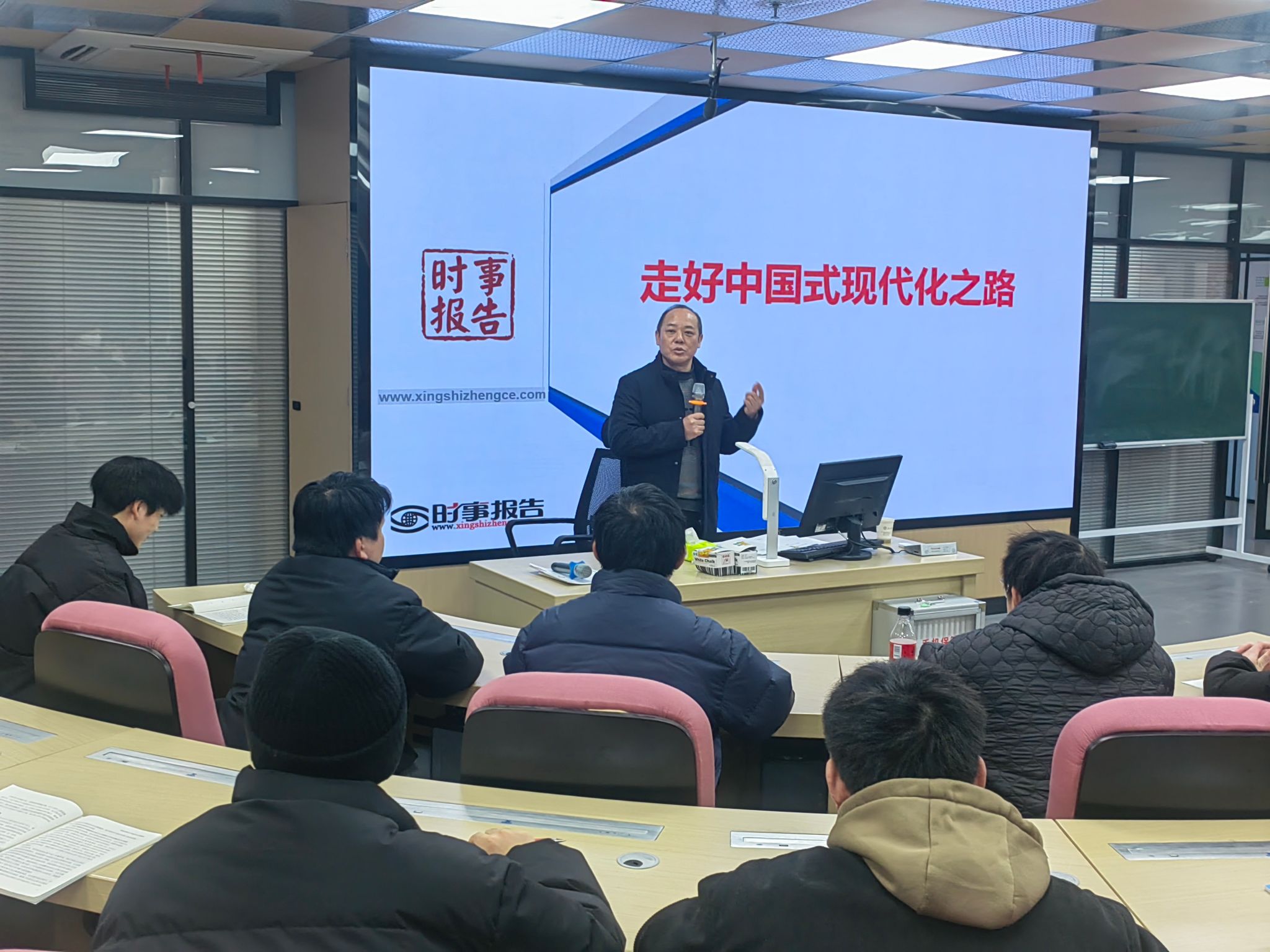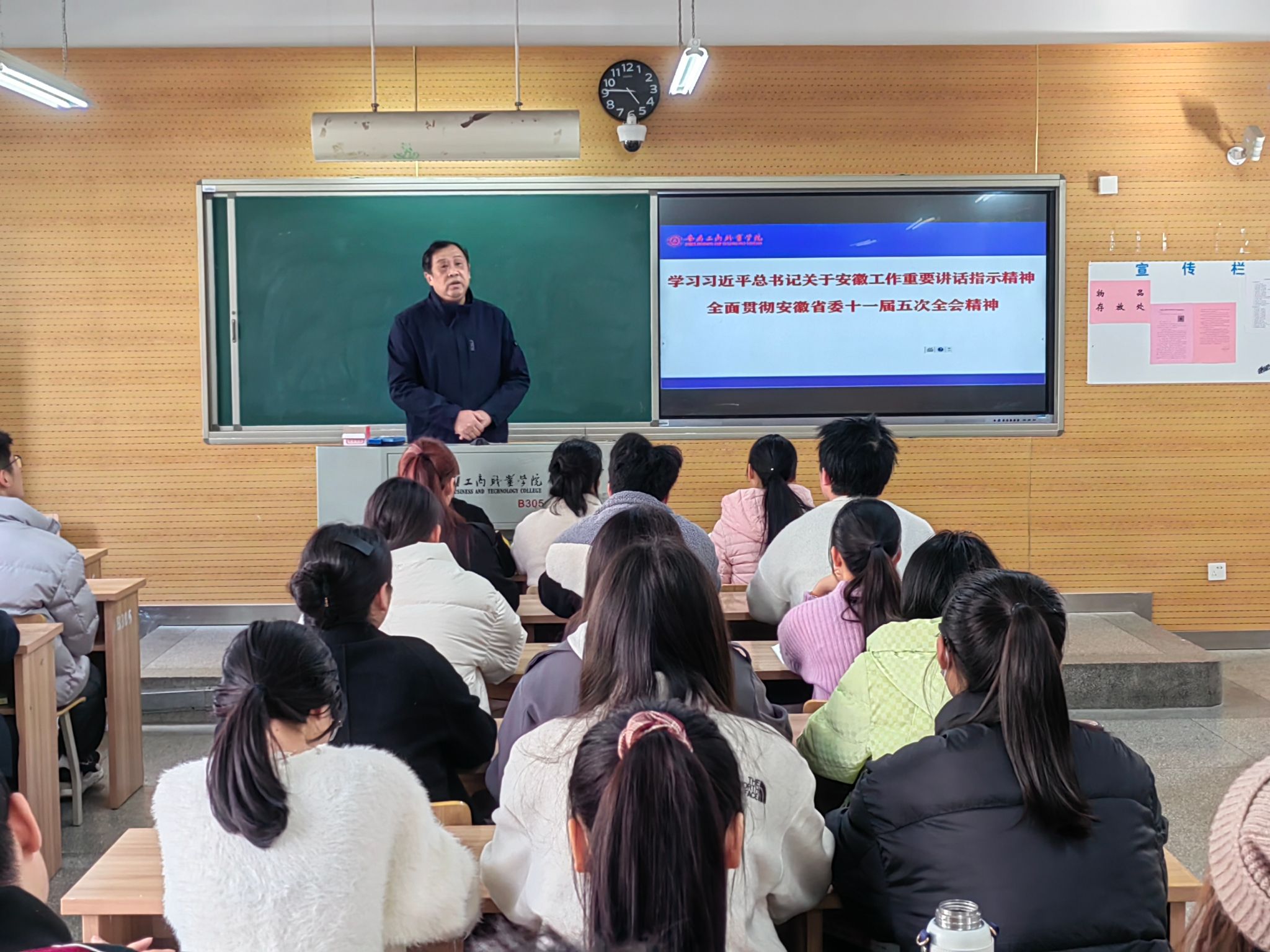 为全面贯彻党的教育方针,落实好学校党政领导班子带头推动思政课建设的要求,本学期以来,校党委班子成员齐建平、李雪、陈行、胡捍东、陈章奇、吴松飞、刘浩、孔成、朱小龙分别走进2023级各班级,为学生讲授形势与政策课。内容包含《开辟马克思主义中国化时代化新境界》《走好中国式现代化之路》《中国经济“形”稳“势”升》《加强建设教育强国、科技强国、人才强国》《赓续历史文脉 谱写当代华章》《以新安全格局保障新发展格局》等专题,用创新的理论、严谨的逻辑、生动的语言、鲜活的事例,带给青年学子精神的滋养。