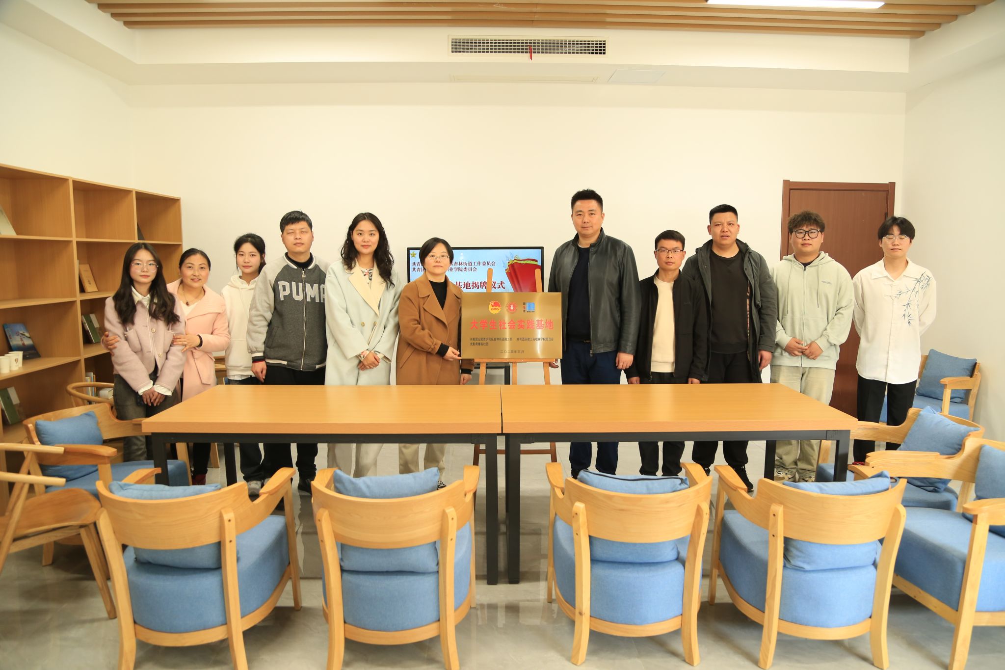 在团合肥市委的领导和团庐阳区委的支持下,我校团委与庐阳区杏林街道团工委现场举行了“大学生社会实践基地”揭牌仪式,并参观了杏林街道共青团“青春直播间”。