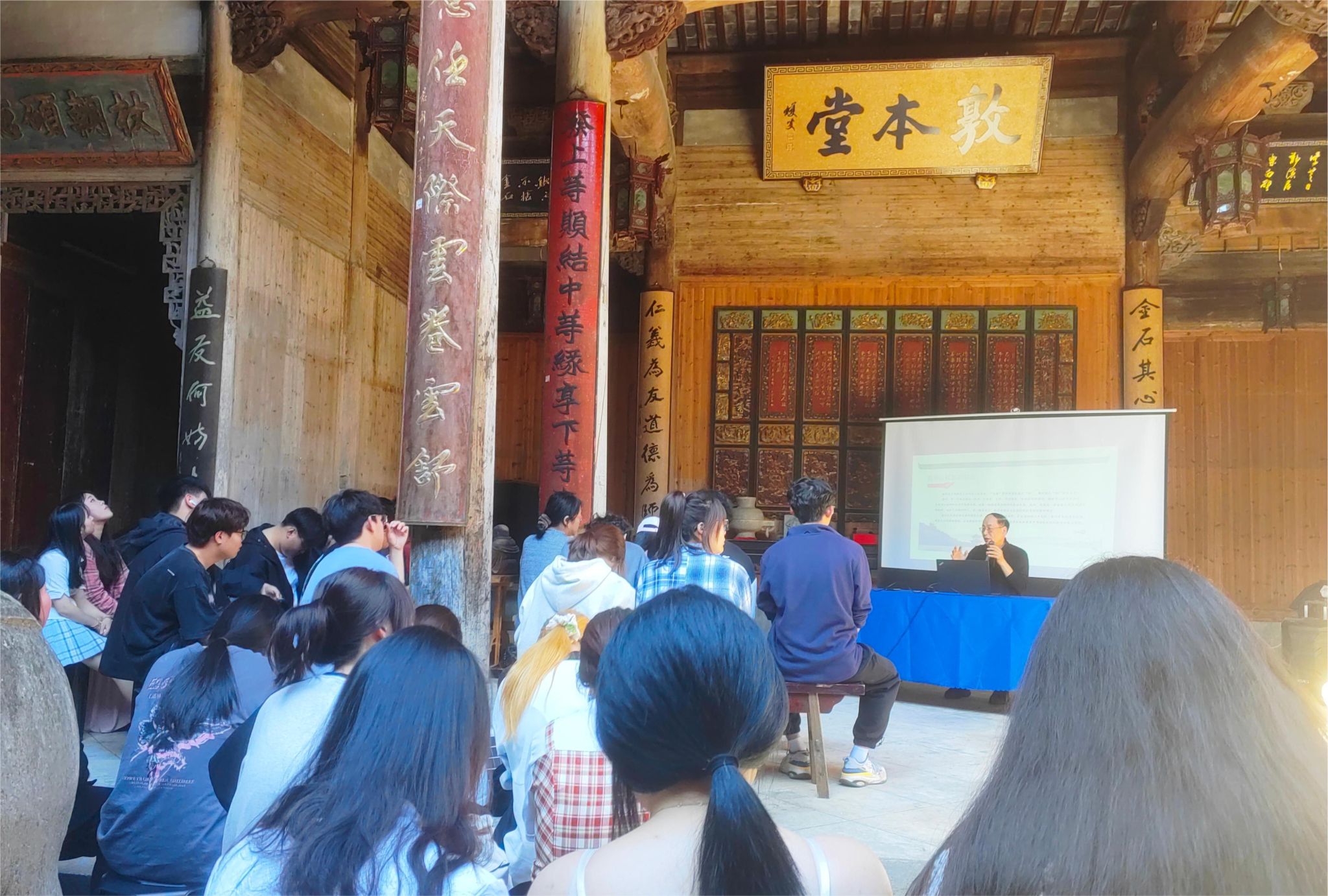 左其琨以自己调研的图片资料和敦本堂现场的徽州建筑三雕(木雕、砖雕、石雕)为例,深入剖析其艺术的独特魅力,分析徽派建筑在造型美、质朴美、韵律美等方面的独特之处。结合讲座现场拥有着宏村400年历史的清代徽派建筑敦本堂,每位参与者都身临其境地感受到了徽州古民居的建筑之美,深刻理解中国传统文化的深邃与博大。