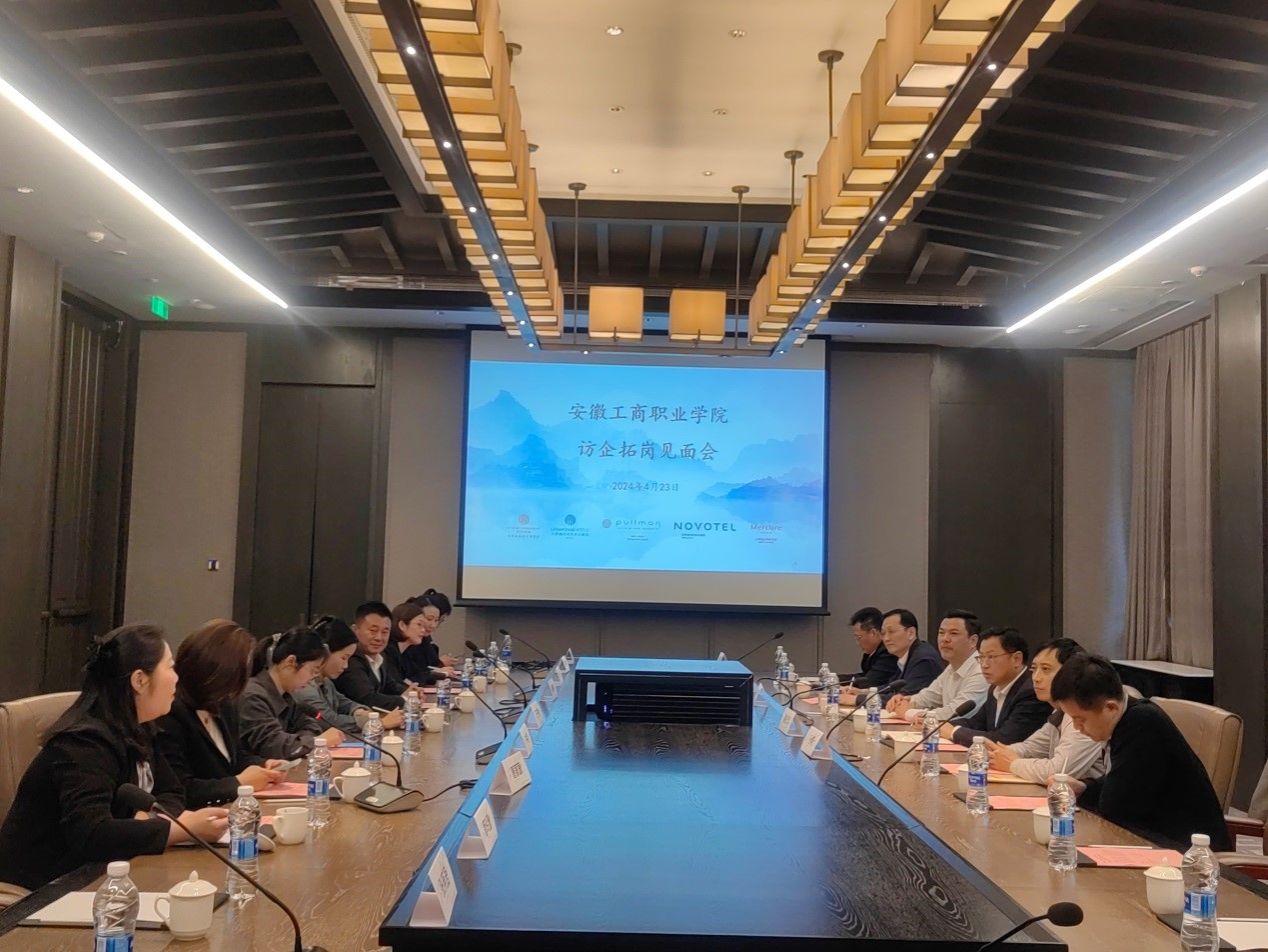 为贯彻落实教育部《关于做好2024届全国普通高校毕业生就业创业工作的通知》和《安徽省教育厅关于推深做实高校书记校长访企拓岗促就业工作的通知》的文件要求,4月23日,校党委委员、党委副书记陈行,校党委委员、副院长胡捍东,党委委员、副院长陈章奇,校党委委员、纪委书记吴松飞一行赴合肥施柏阁大观酒店、合肥融创永乐半山酒店、合肥融创铂尔曼酒店、合肥融创美居酒店、合肥融创诺富特酒店、合肥融创乐园等6家企业开展访企拓岗促就业专项行动,旅游健康学院院长傅绪明等陪同参加走访调研。