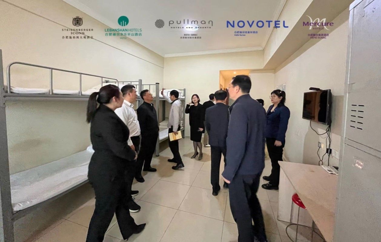 走访调研中,校领导实地考察了企业工作环境,并深入岗位一线和住宿场所了解情况,与企业就实习生安全管理、职业发展路径、薪资待遇等方面交换了意见。校领导还亲切看望了在合肥融创文旅城酒店群工作的我校往届毕业生。(撰稿:孙群 审核:傅绪明)