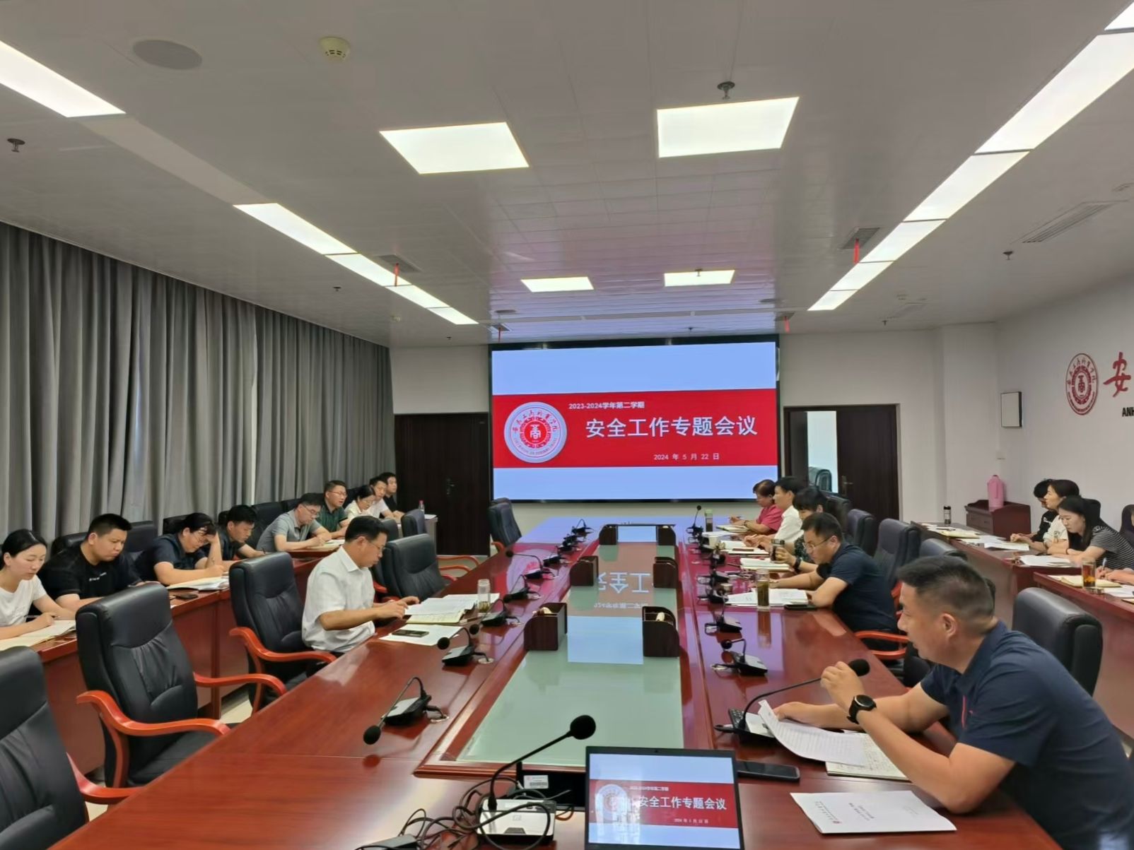 5月22日下午,学校在双凤校区综合楼第三会议室召开2023-2024学年第二学期安全工作专题会议,学生处、团委、财务处、后勤管理处、保卫处及各二级学院负责人参加会议。会议由副院长胡捍东主持。