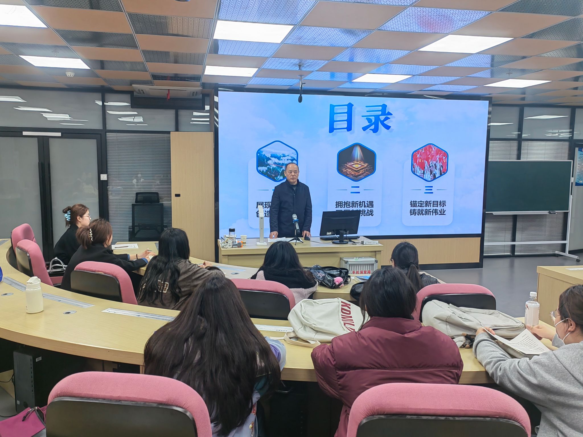 课堂上,老师们的教学逻辑严密、语言生动、事例鲜活,学生们积极互动,深入思考,课堂气氛热烈,成效明显。学生们纷纷表示,作为新时代大学生,要主动了解国家形势、积极学习相关政策,不断夯实专业技能,努力成长为让党放心、有益社会的社会主义建设和接班人。