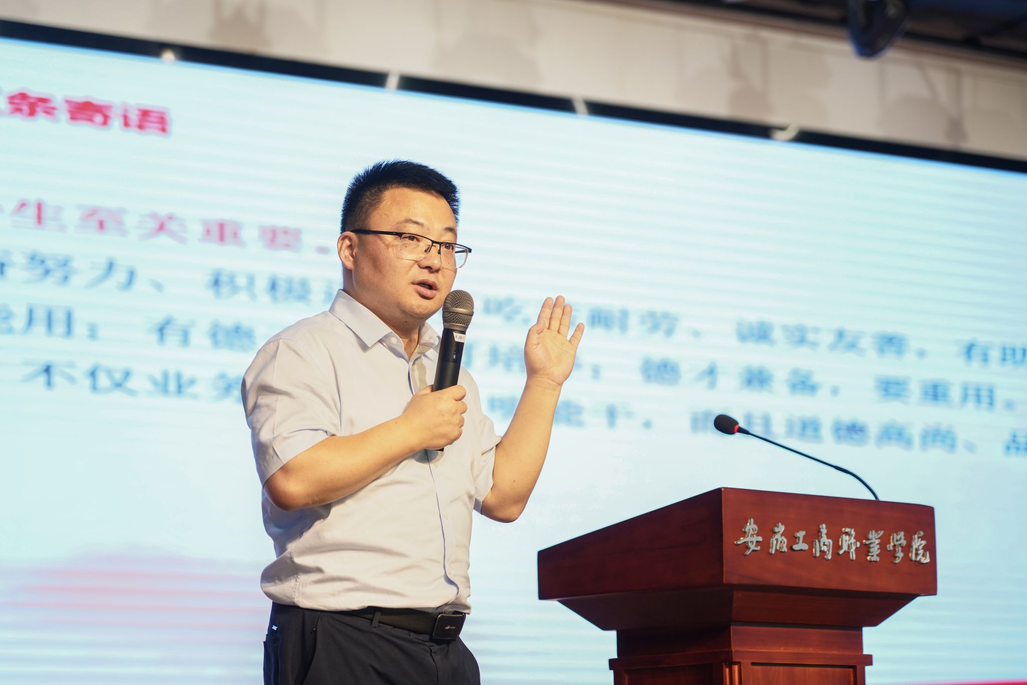 6月21日,由共青团安徽省属机关工作委员会主办、校团委承办的“‘青慧领航’榜样进校园宣讲活动”在我校大学生活动中心举行。省直团工委书记盛志伟和校党委副书记陈行出席了此次活动,校团委委员及600余名优秀学生代表一同聆听了这场精彩的“大思政课”。