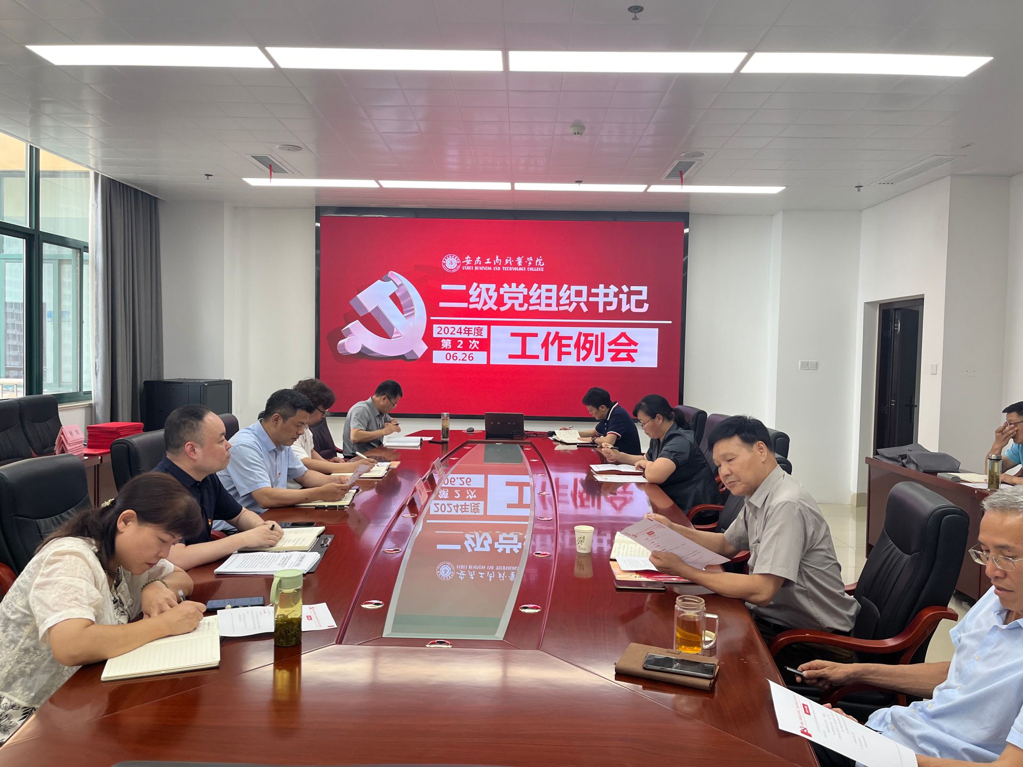 2024年6月26日下午,学校在综合楼一号会议室召开二级党组织书记工作例会。校党委副书记陈行主持会议,组织人事处、党委宣传统战部、办公室相关负责人,各二级党组织书记参加会议。