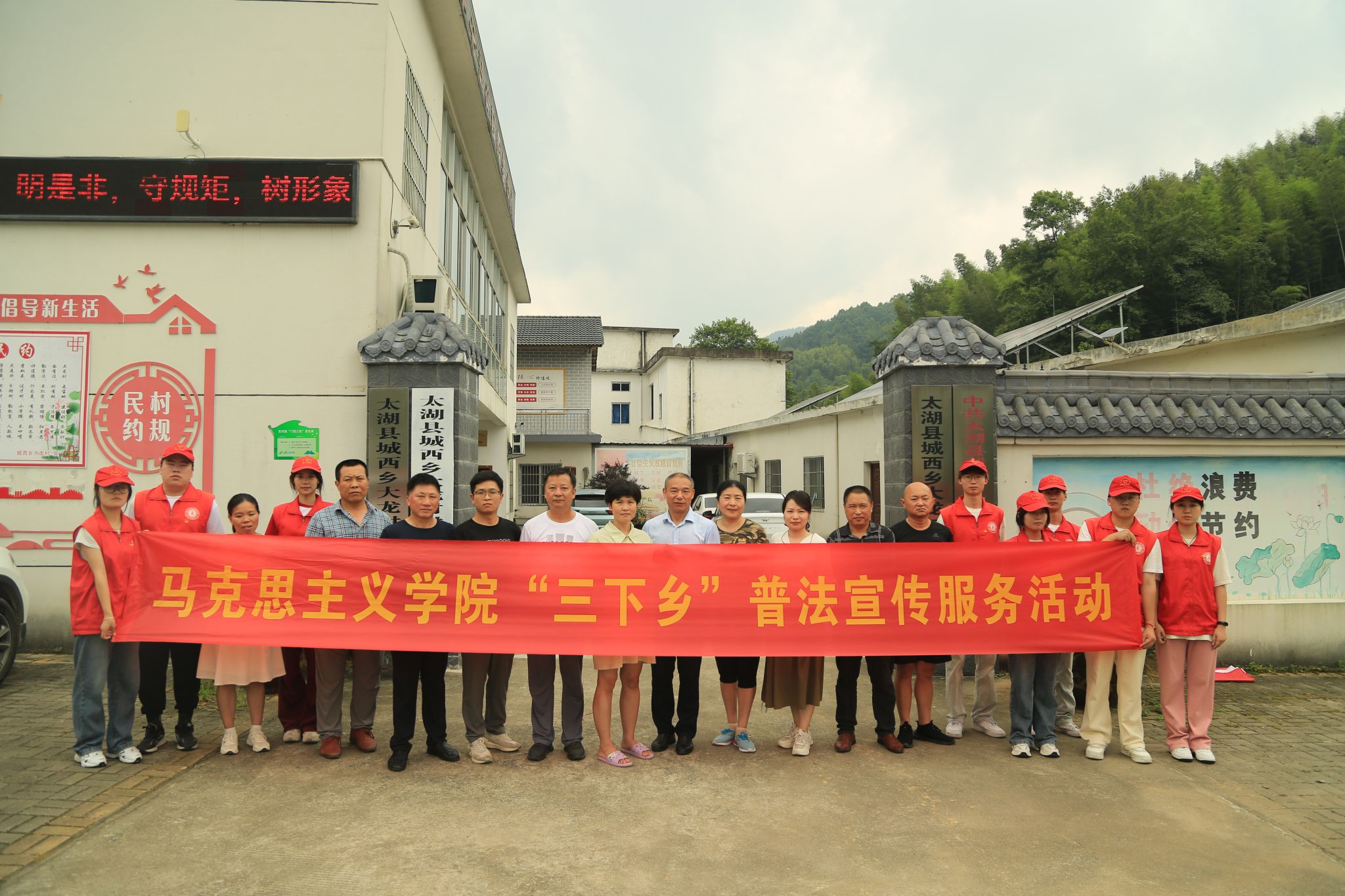 为深入学习贯彻落实党的二十大精神,响应《2024年“江淮普法行”活动方案》的号召,以青春之力推动乡村振兴战略实施,7月10日—12日,马克思主义学院联合校团委组建2024年大学生暑期文化科技卫生“三下乡”社会实践服务团队,前往太湖县城西乡大龙村、树林村、界址村开展社会实践活动。