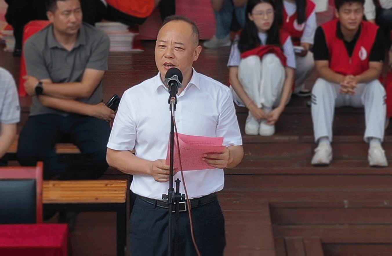 党委书记齐建平在致辞中代表全院师生员工向2024级新同学的到来表示热烈的欢迎,向关心和陪伴同学们成长的家长和老师们致以崇高的敬意!向承担此次军训任务的全体教官表示衷心的感谢!