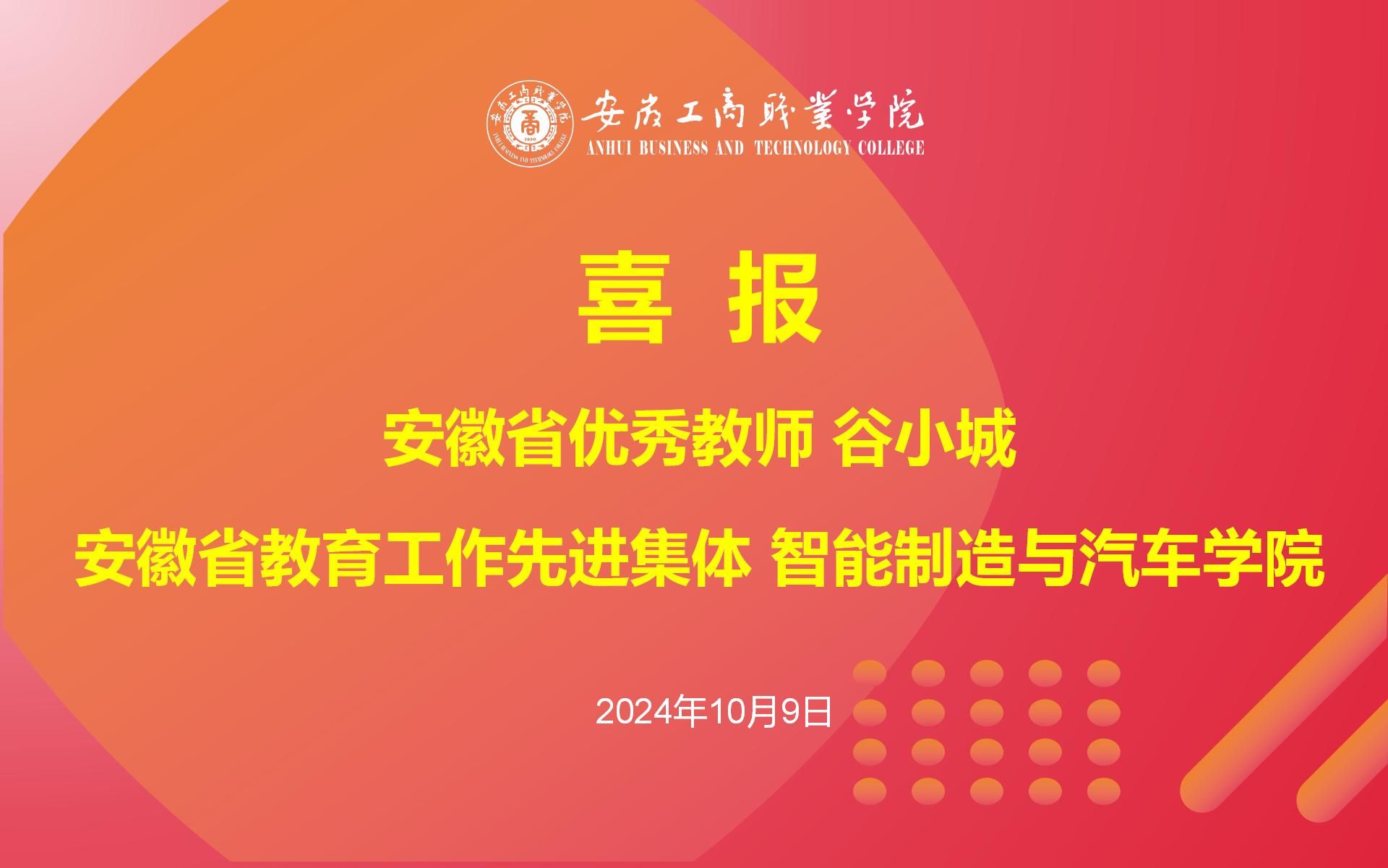 智能制造与汽车学院和谷小城老师此次获评“安徽省教育工作先进集体”和“安徽省优秀教师”荣誉称号,是对他们立足岗位、无私奉献的充分肯定,也展现了我校教师良好的精神风貌和优秀的专业素养,是近年来学校高度重视学院发展和师资队伍建设的成果。