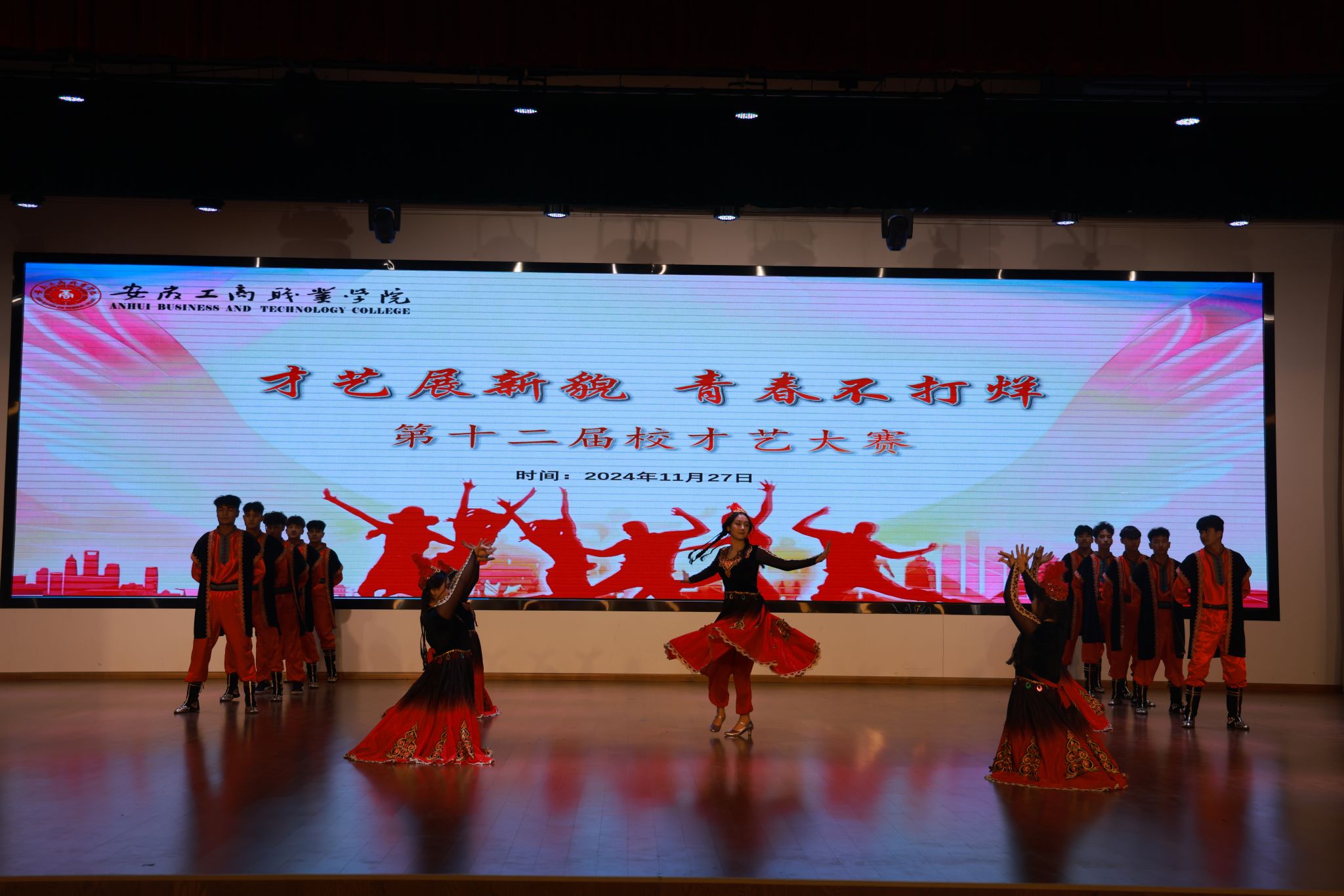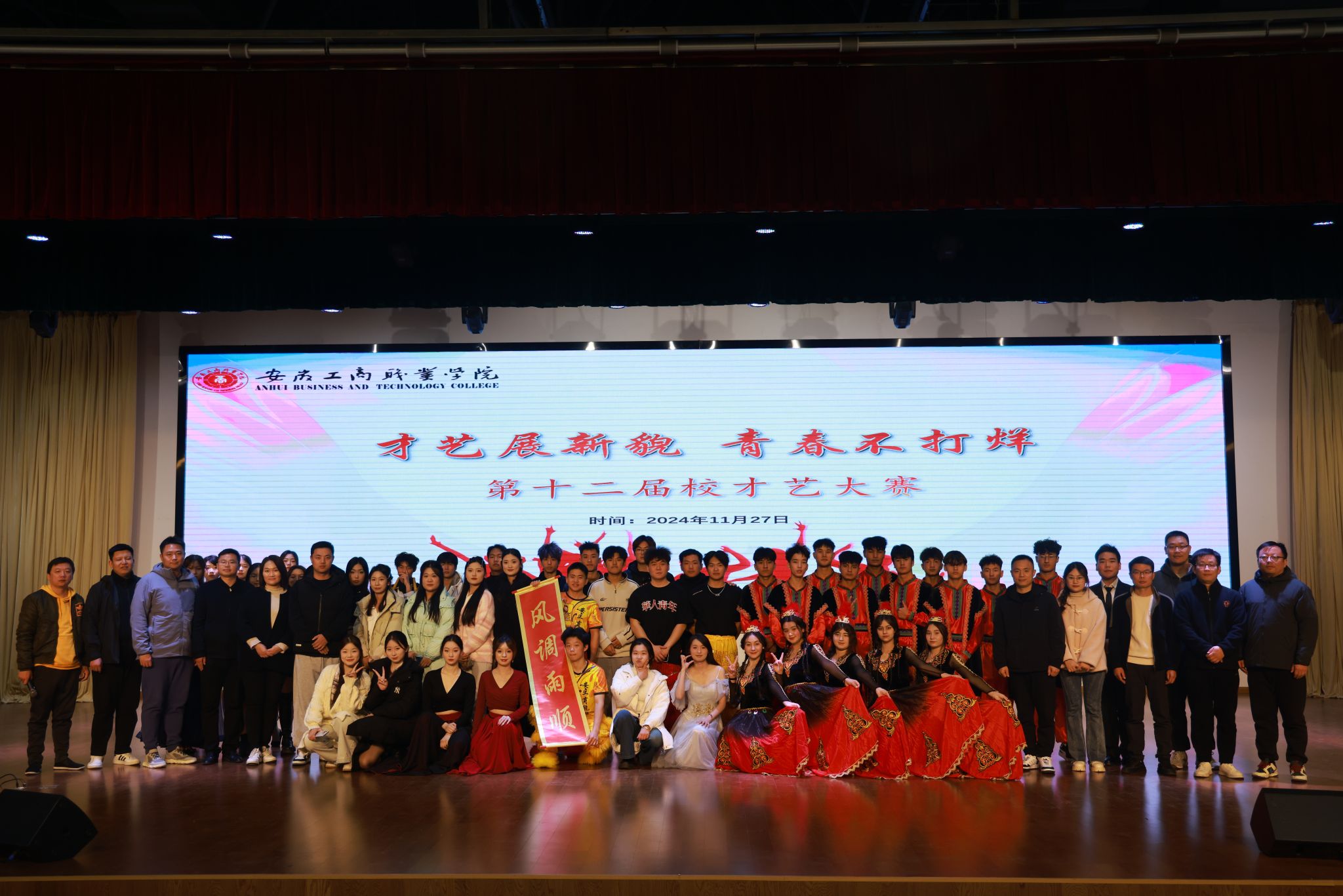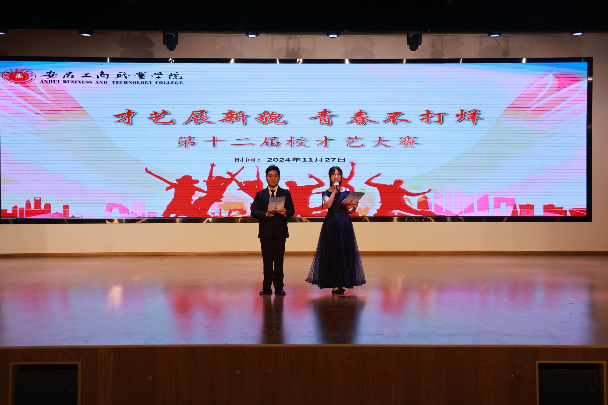 青春正年少,逐梦正当时!11月27日中午,大学生活动中心内洋溢着青春的气息与艺术的热情,我校第十二届才艺大赛决赛在这里隆重举行。本次大赛以“才艺展新貌,青春不打烊”为主题,荣幸邀请到双凤经济开发区团工委副书记吴开平、峰宁社区党总支书记张爱华、安徽理工大学(合肥)团委老师谢奇霖担任评委。校团委老师、各二级学院团总支书记及500多名师生共同见证了这场充满青春与梦想的艺术盛宴。