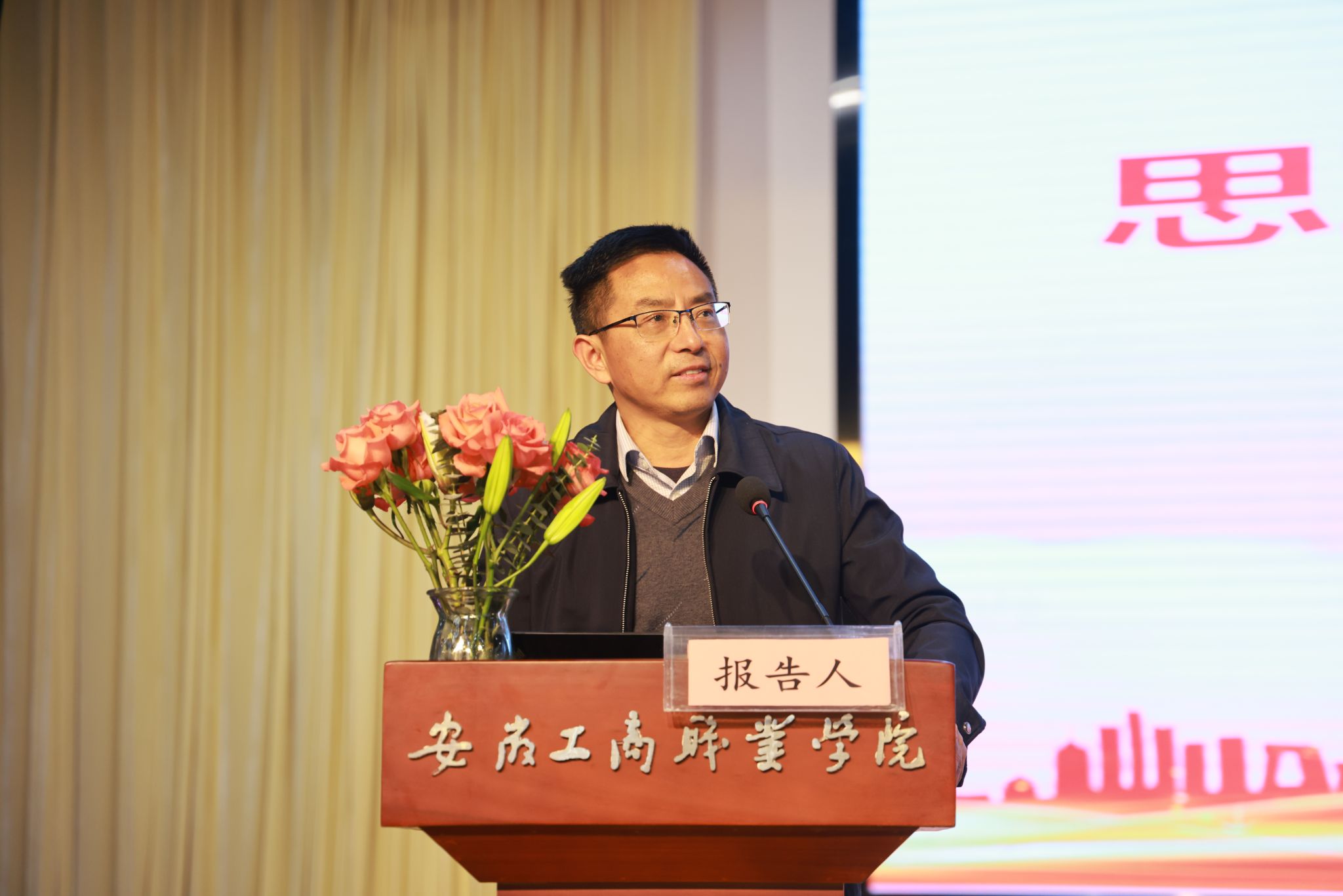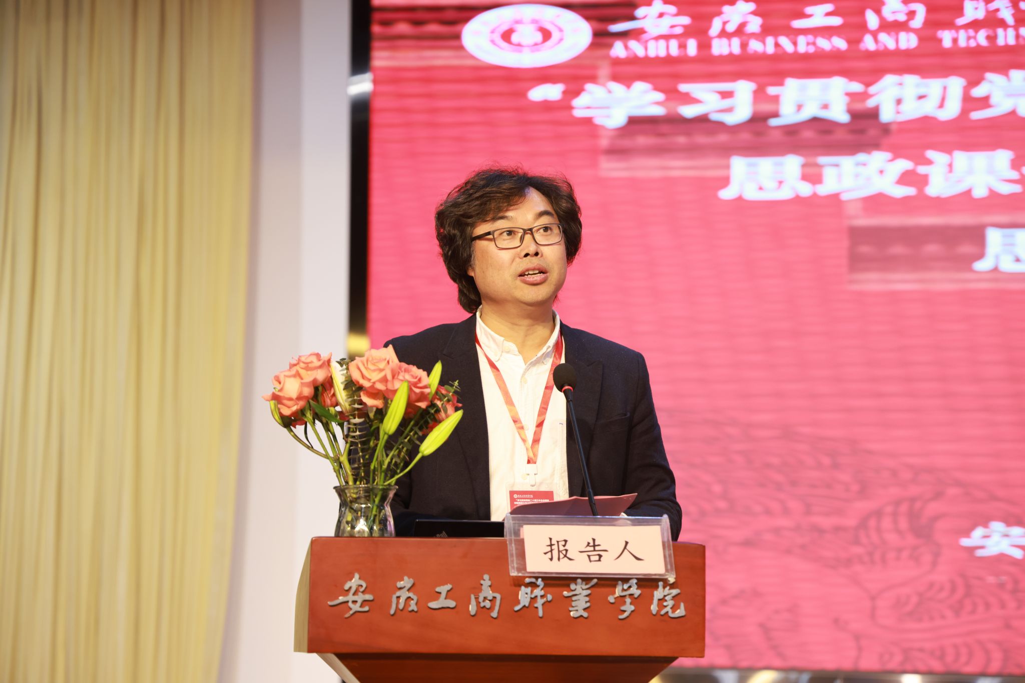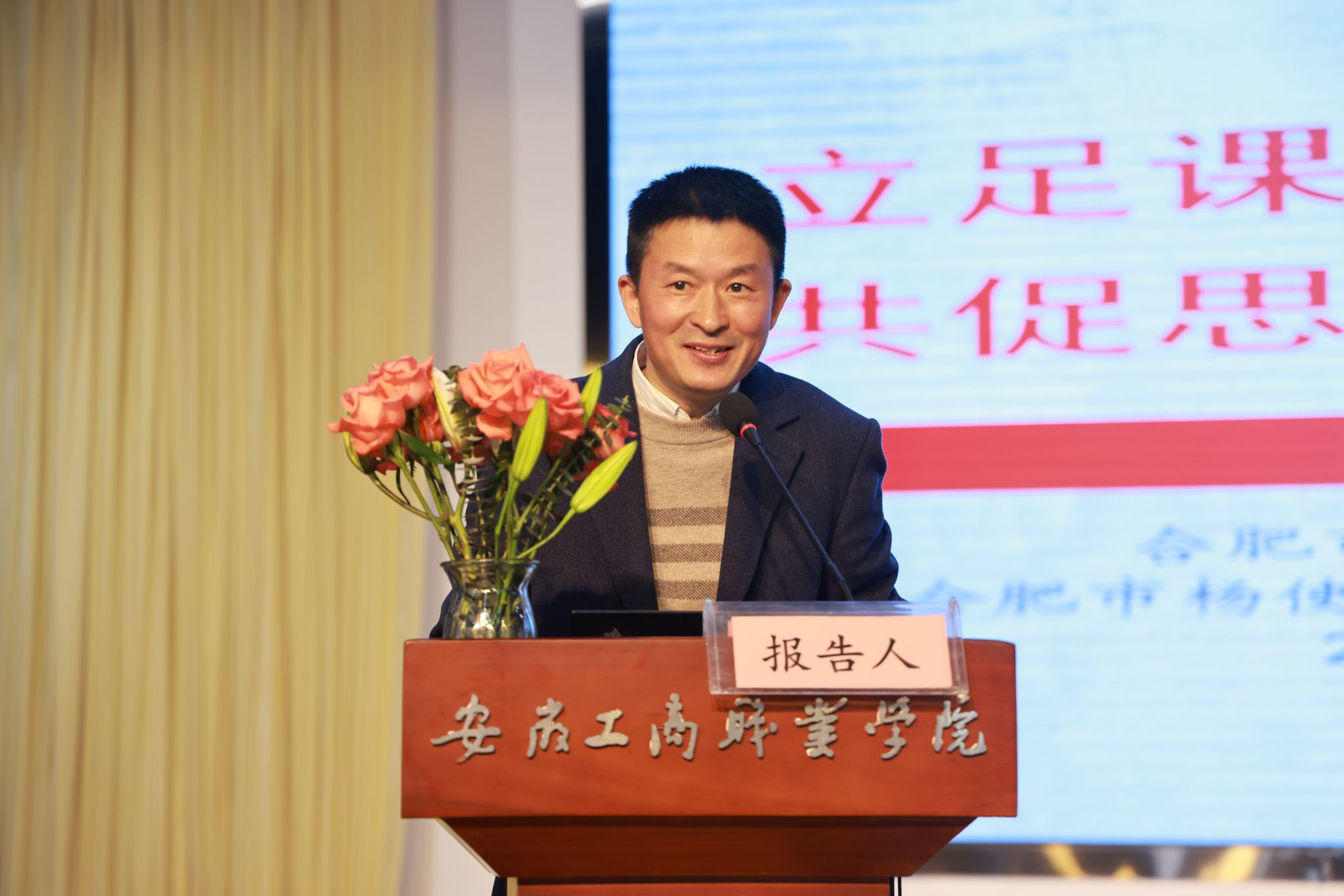 专家讲座环节,会议邀请安徽省大中小学思政课一体化建设专家指导组组长刘新跃教授、安徽中医药大学马克思主义学院院长董玉节教授、长丰县教体局教研室副主任、思政教研员汤多宽、合肥市琥珀中学党委委员、教研主任杨使兵先后作主旨报告。安徽工商职业学院党委委员、党委宣传统战部部长孔成致闭幕词。长丰县王孟军、孙玉芝名师工作室、长丰县谭联合、颜凡云名师工作室、合肥市董飞虹教育名师工作室、合肥市吴晓静教育名师工作室、合肥市喻梅教育名师工作室同时参会。