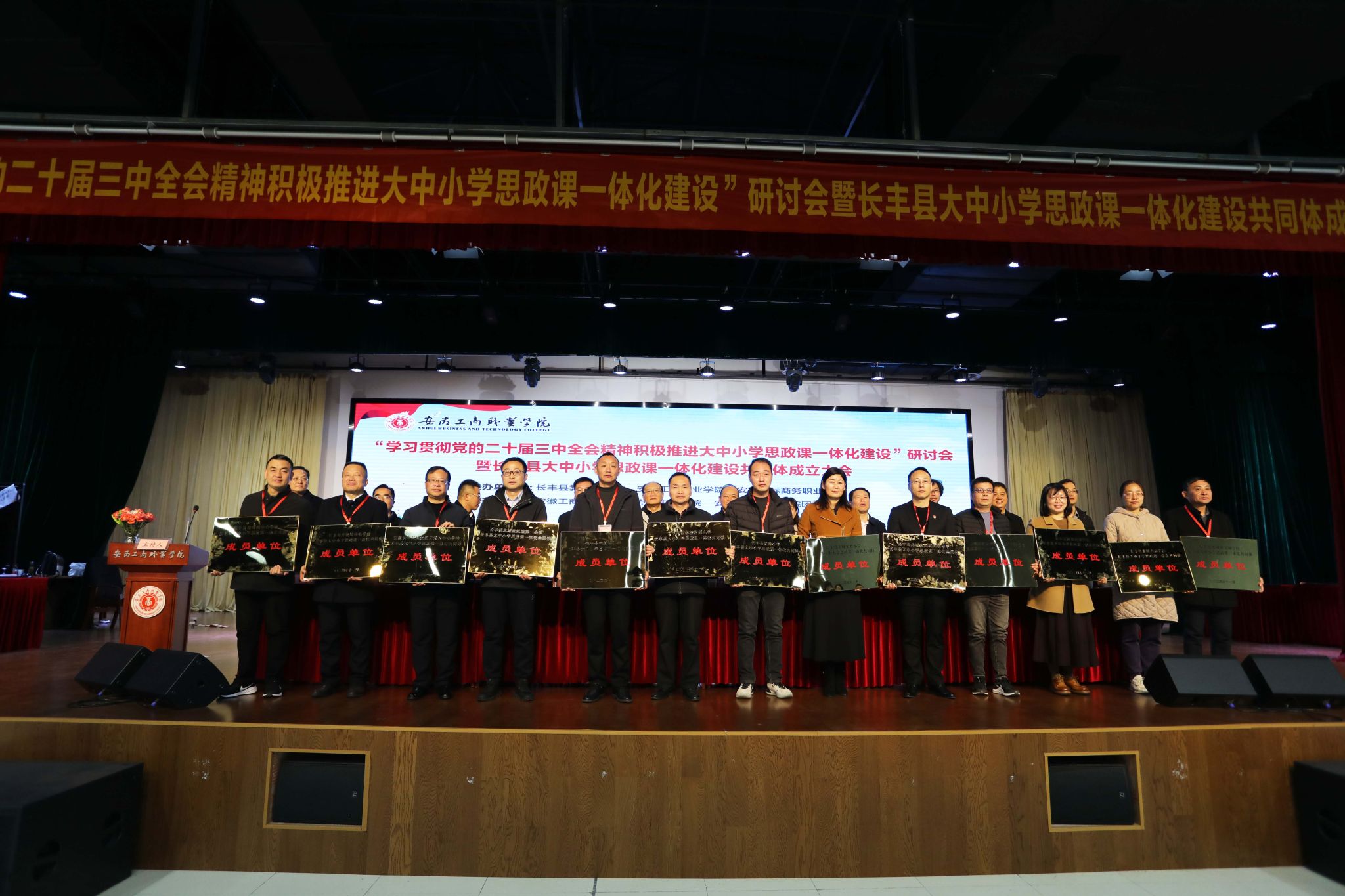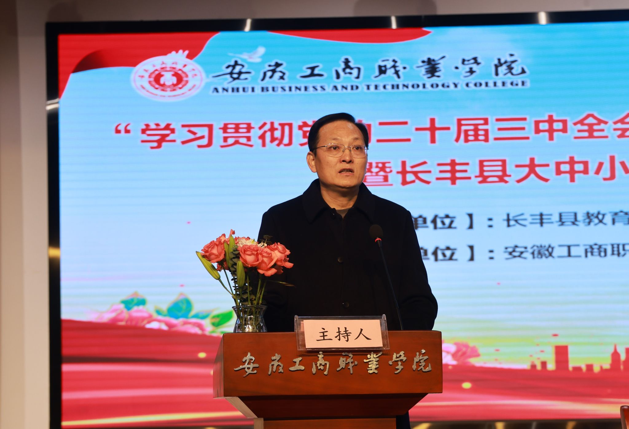 11月29日,“学习贯彻党的二十届三中全会精神,积极推进大中小学思政课一体化建设”研讨会暨长丰县大中小学思政课一体化建设共同体成立大会在我校成功举行。会议由长丰县教育体育局、安徽工商职业学院、安徽国际商务职业学院共同主办。安徽省大中小学思政课一体化建设专家指导组组长、教授刘新跃、安徽工商职业学院党委书记齐建平、合肥市教育局党委委员、副局长张艺国,安徽工商职业学院党委委员、副校长陈章奇、长丰县教育体育局党委书记、局长杨维成、安徽工商职业学院党委委员、党委宣传统战部部长孔成等出席启动仪式并为共同体成员单位授牌,安徽中医药大学等专家学者及来自长丰县28所大中小学主要负责人及教师代表100余人参加大会。陈章奇主持大会。