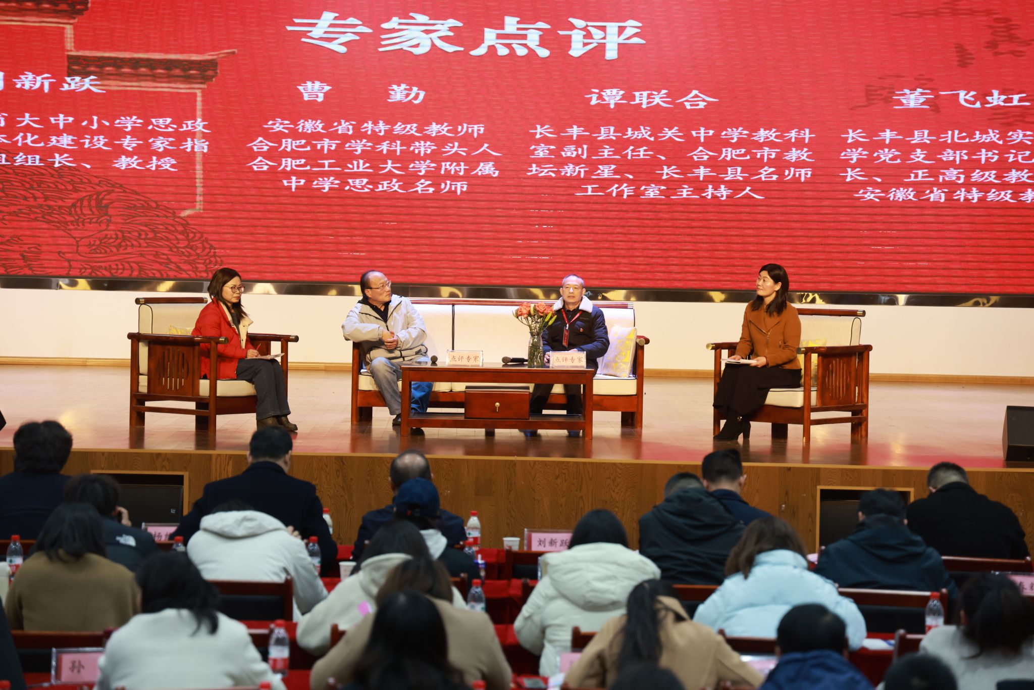 示范课展示环节,来自安徽工商职业学院、安徽国际商务职业学院、长丰县朱巷中学、长丰县第二中学和长丰县北城实验小学的五位教师代表围绕《弘扬家庭美德,传承良好家风家教》主题同课异构、同题共答、同台展示,共上一堂思政课。长丰县北城实验小学党支部书记、校长董飞虹,长丰县城关中学教科室副主任谭联合,合肥工业大学附属中学思政名师、安徽省特级教师曹勤,安徽省大中小学思政课一体化建设专家指导组组长刘新跃先后作精彩点评。