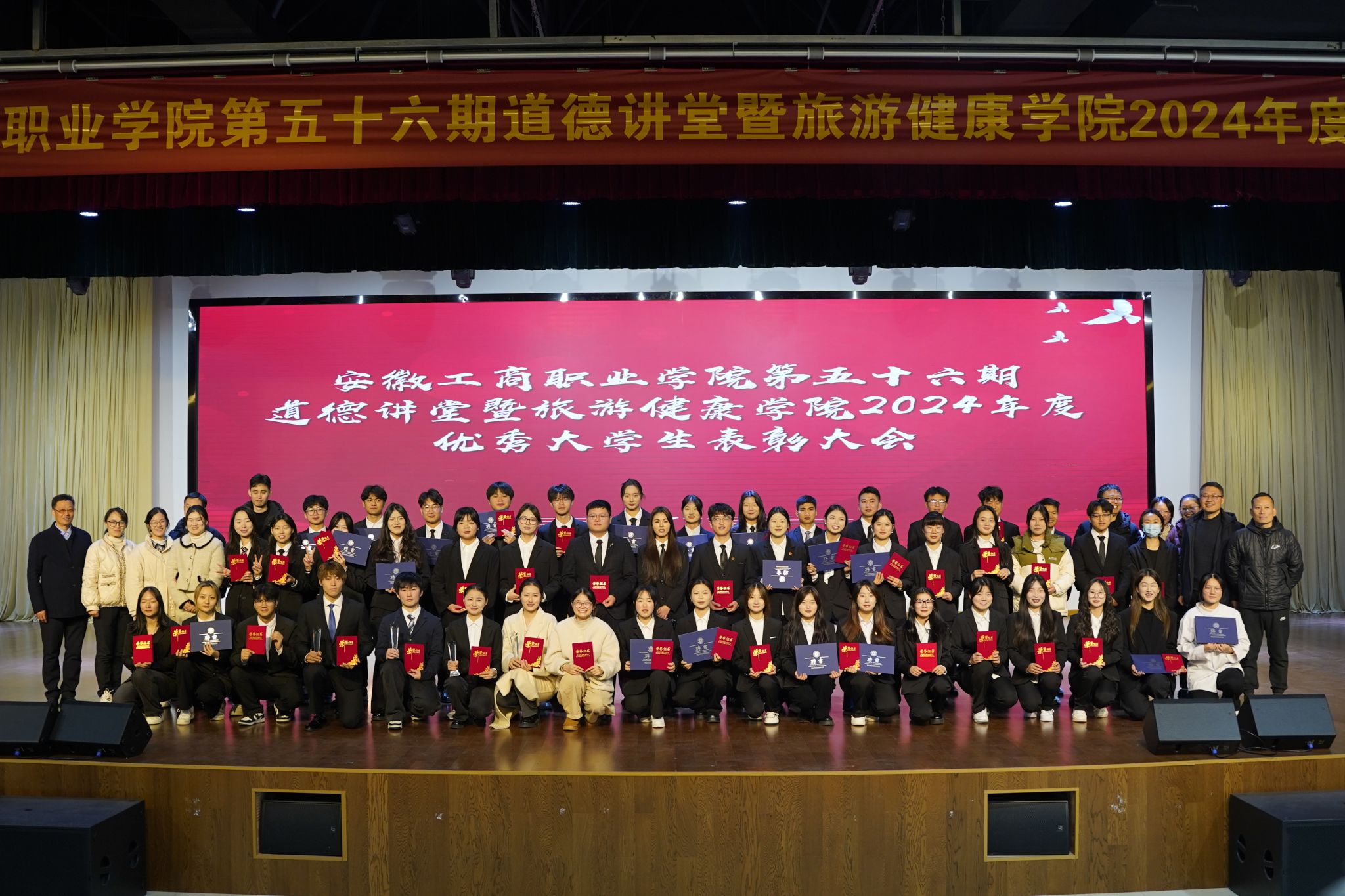 榜样是飘扬的旗帜,引领我们不懈前进,榜样是彼岸的灯塔,指引我们走向光明。在过去的一年里,旅游健康学院学生在技能大赛、勤奋学习、社会实践、志愿服务等方面取得了优异的成绩,为充分发挥优秀学生的榜样力量,推进先进典型示范工程,引导和激励学生勤奋学习,奋力拼搏,努力践行“砺志、敬业、致能、强体”的校训精神,营造积极向上的优良学风,12月11日中午,由旅游健康学院承办的学校第五十六期道德讲堂《身边的榜样》在双凤校区大学生活动中心隆重举行。旅游健康学院党政领导班子成员以及各教研室负责人、专任教师及辅导员出席了本次活动。