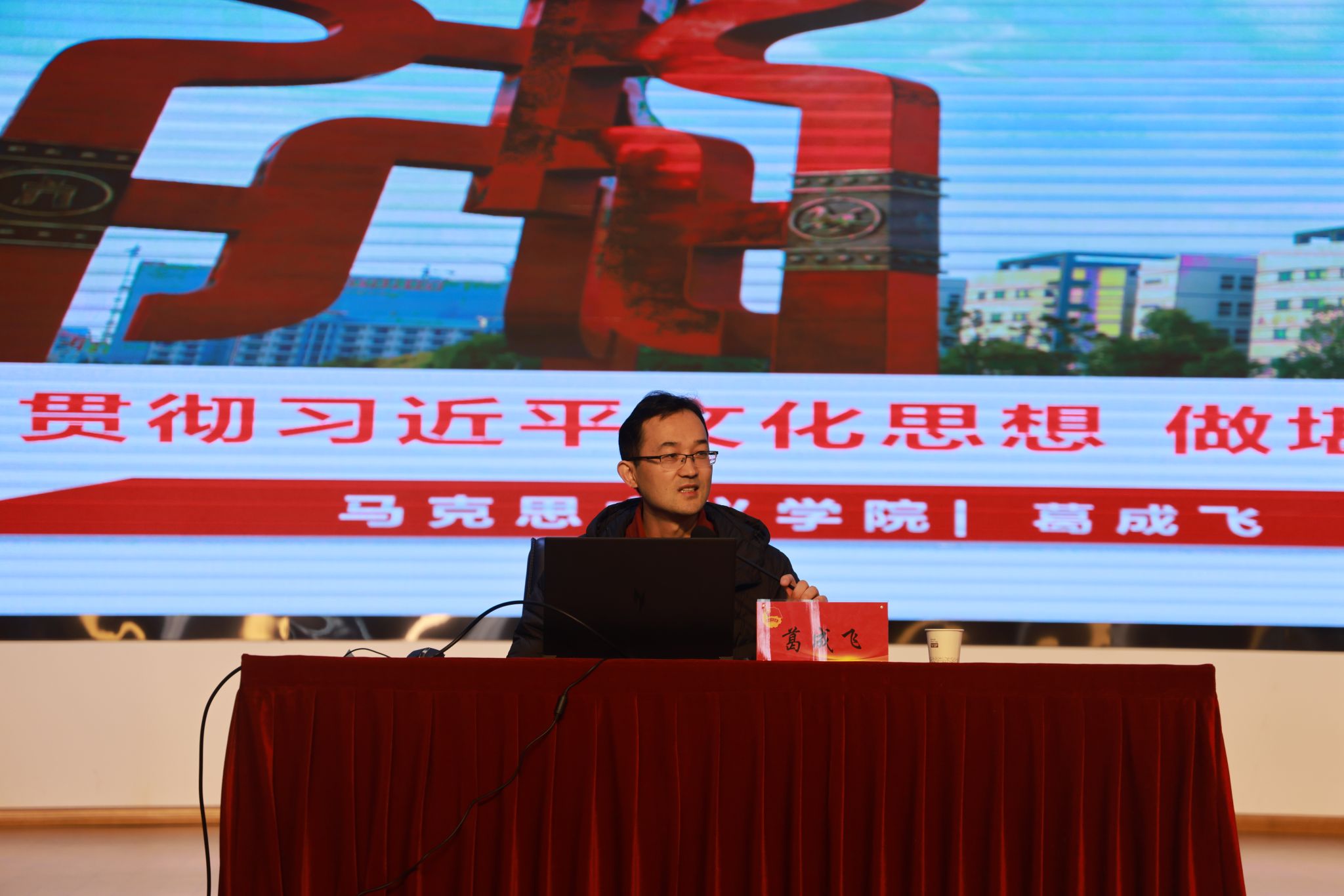 12月17日,马克思主义学院院长葛成飞紧接着作题为《学习贯彻习近平文化思想 做堪当民族复兴大任的时代新人》的专题讲座。他鼓励学员们认真学习领悟习近平文化思想的理论逻辑、历史逻辑和实践逻辑,坚定文化自信、坚持守正创新、赓续中华文脉,担负起新的文化使命,奋力展现新气象新作为,为强国建设、民族复兴作出新的更大贡献。