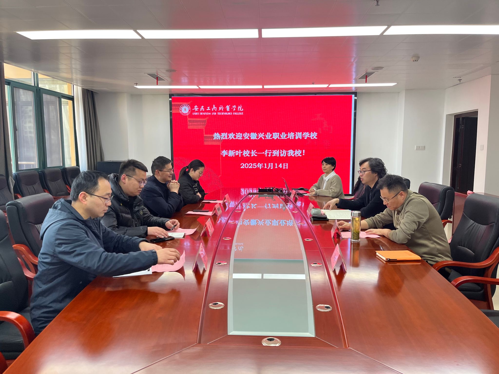 1月14日,合肥兴业教育集团校长李新叶、副校长周康、左从瑞、阮红月等一行到访我校。李新叶一行实地首先参观了我校的实习宾馆、茶艺与插花实训室、智能网联汽车工程实训中心、智慧思政教学实践基地、智能财税实训中心、人工智能体验中心等实训场地。