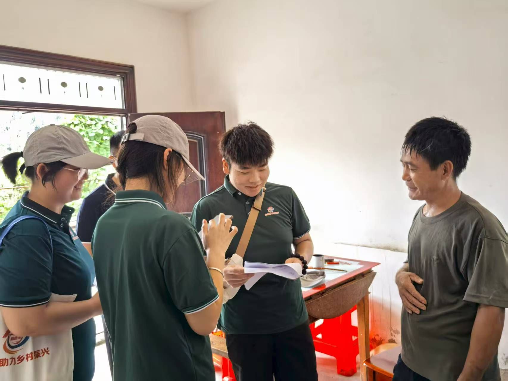 8月12日,“普育乡风”志愿服务队一行走进凤形组、张河组和灯上组,组织开展国家通用语言文字使用情况专题调研。服务队通过入户走访、问卷调查和深度访谈等形式,与村民亲切交流,详细了解普通话在家庭交流、子女教育及乡村生活中的使用现状,认真听取村民对推广普通话、传承优良乡风的文化需求与实践建议。调研达到了师生真实掌握乡村语言生态,为推普工作融入乡村振兴提供基本依据的基本目标。