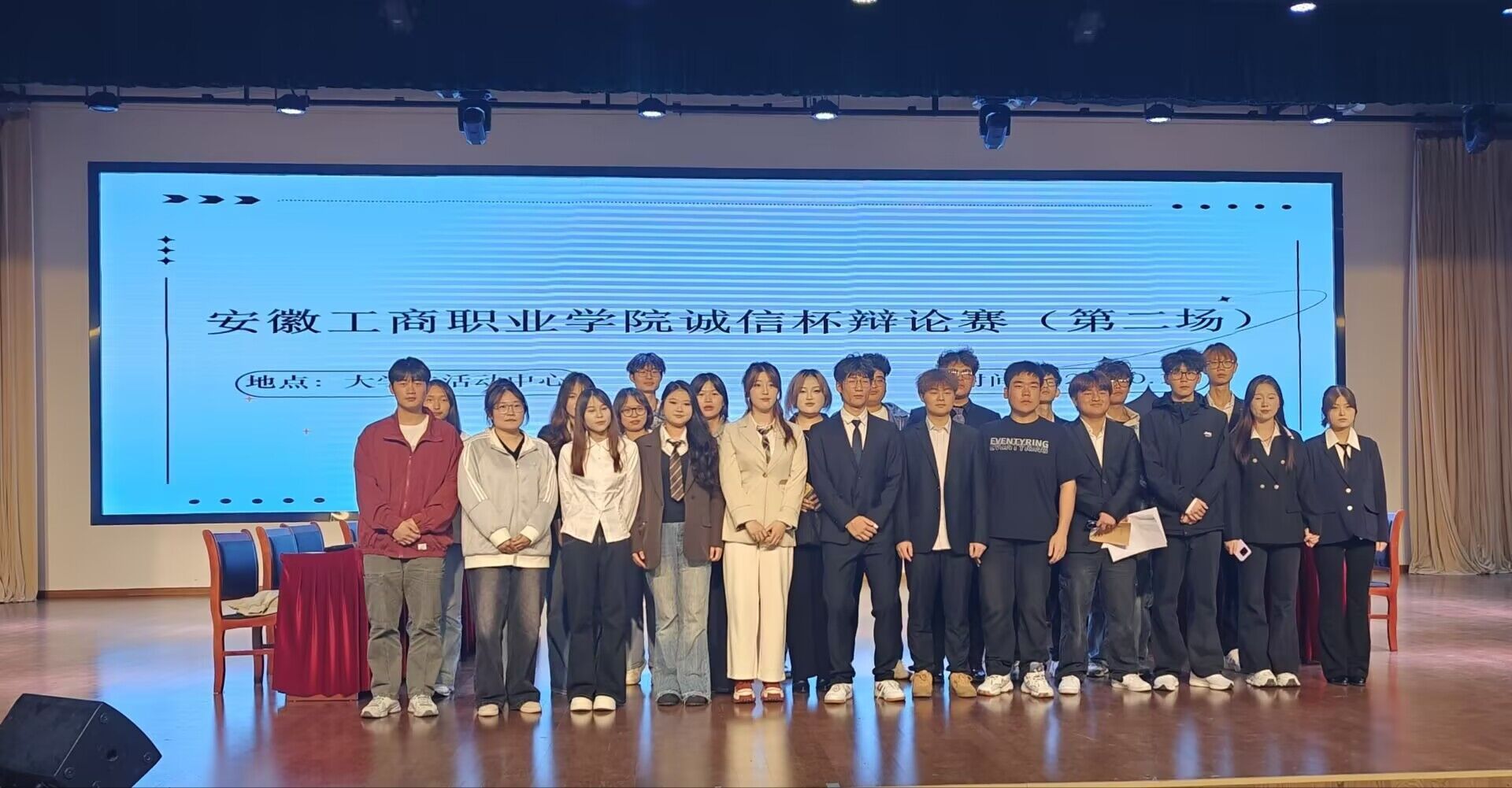 诚则贯通天下,辩乃启迪真知。近日,我校为期近半月的2025年大学生诚信辩论赛在大学生活动中心圆满收官。校团委委员、各二级学院团总支书记担任评委,各学院学生代表共200余人现场观摩。本届辩论赛聚焦“诚信”核心,两轮角逐激荡思维火花,辩题设计层层深入,从人际伦理到社会现象,再至科技前沿与人生根本,全面考察了学子们对“诚信”内涵的深刻理解与多维思辨。