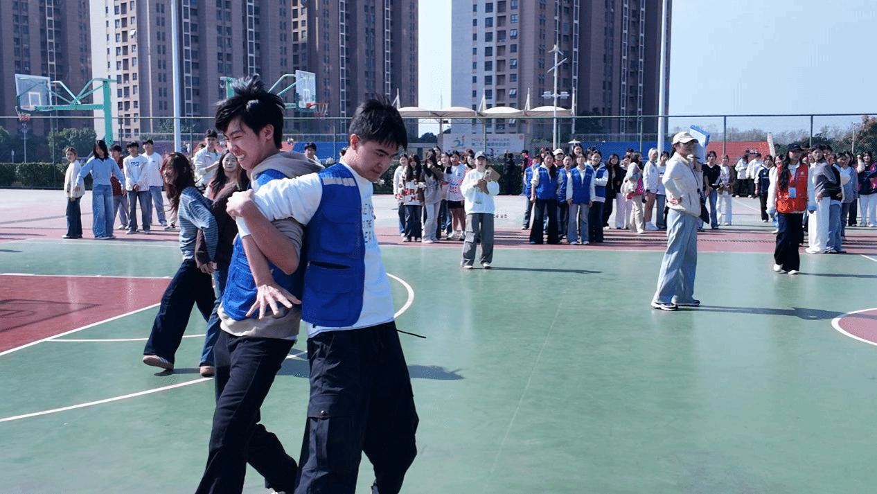 他们的脸上带着发力的坚毅,却也传递出队友间的信任与支持,没有激烈对抗,却有着最真挚的伙伴情谊,这是运动会“团结”主题最生动的注脚。
