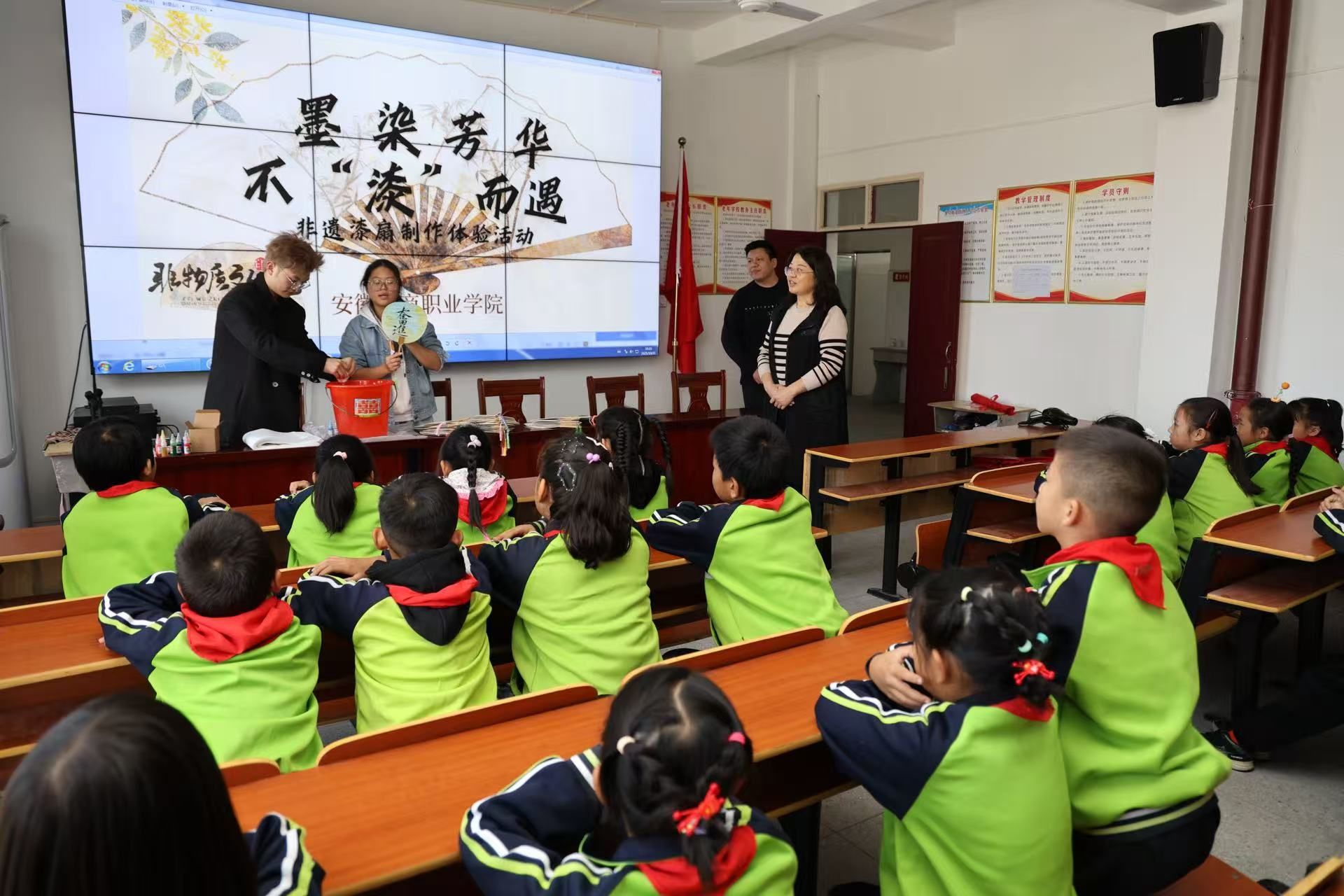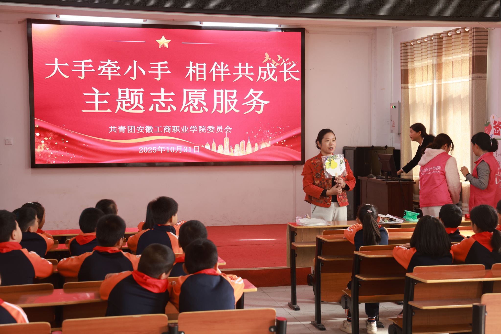 秋阳明媚,非遗流彩。2025年10月31日,我校青年志愿者们驱车来到安庆市太湖县城西乡的树林小学与春光小学,成功举办了一场以“大手牵小手,相伴共成长”为主题的非物质文化遗产体验活动。本次活动旨在将古老的“漆扇制作”技艺带入乡村课堂,在大学与小学之间架起一座关爱与传承的桥梁。