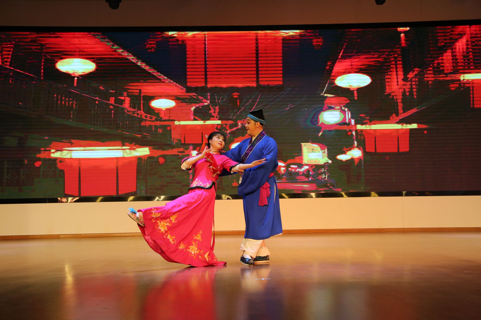 本场演出名家荟萃,精彩纷呈。活动在黄梅歌《山野的风》悠扬的旋律中拉开帷幕,国家一级演员白玉兰主角奖获得者夏圆圆的演唱清丽婉转,瞬间将观众带入黄梅戏的艺术世界;随后,黄梅小戏《夫妻观灯》妙趣横生,以其诙谐生动的表演赢得了满堂彩;第十八届文华表演奖获得者虞文兵带来的《太阳山上》选段《新四军的好儿郎》,唱腔铿锵,尽显革命者的豪情壮志;而由优秀青年演员黄小可、汪春霖演绎的《梁祝·十八里相送》,则缠绵悱恻,将古典爱情的唯美与哀婉表现得淋漓尽致。此外,黄梅小戏《戏牡丹》以及经典对唱《海滩别》、《夫妻双双把家还》等节目也各具特色,精彩不断。整场演出掌声、喝彩声此起彼伏,现场气氛热烈,演员们深厚的艺术功底和饱满的舞台热情深深感染了在场师生。