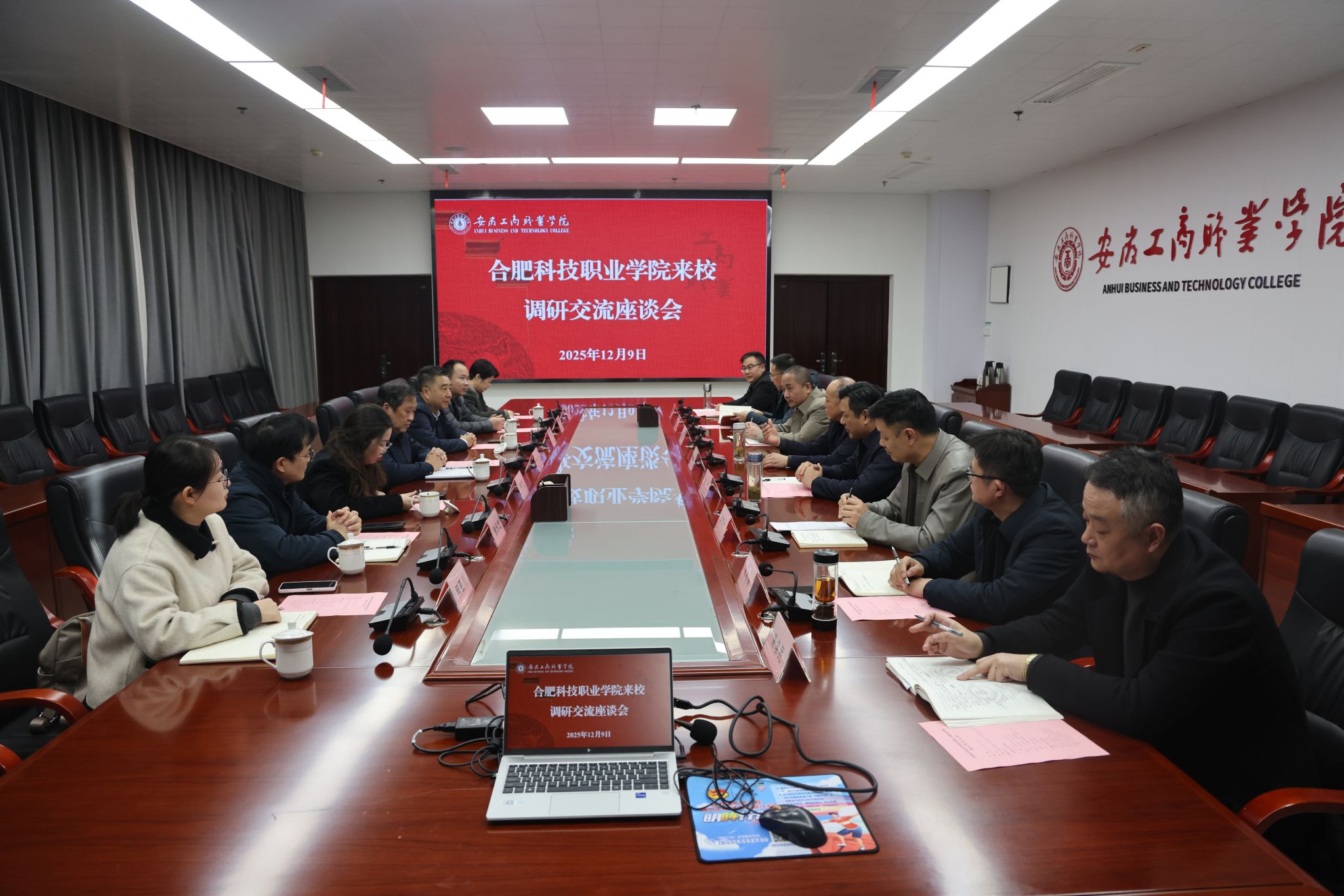 12月9日下午,合肥科技职业学院校长李雪,党委副书记、执行校长王彬一行七人到我校围绕信息化建设工作开展调研交流。校党委书记齐建平,校党委副书记陈行,相关职能处室及二级学院负责人参加调研交流。