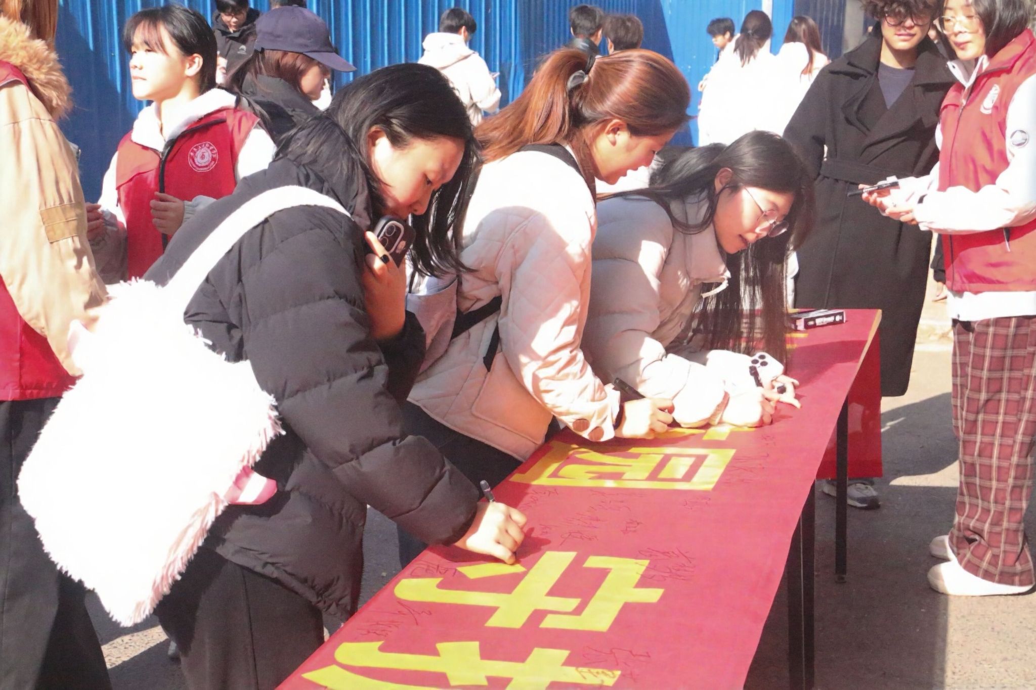 活动现场最为引人注目的环节是横幅签名承诺。印有“共创无塑校园,守护绿色家园”醒目字样的横幅徐徐展开,师生们积极响应,郑重地在横幅上签下自己的名字。一个个签名,不仅代表了对禁塑倡议的个人承诺,更象征着投身环保实践、守护绿色家园的集体决心。横幅逐渐被充满责任感的签名填满,成为校园里一道亮丽的风景线。与此同时,校广播站同步发力,面向全体师生播报《“无塑校园”行动倡议书》全文。清晰而富有感染力的声音回荡在校园各个角落,将“减少塑料污染,共建绿色校园”的理念持续传递,与线下活动形成有力呼应,实现了宣传效果的全覆盖。