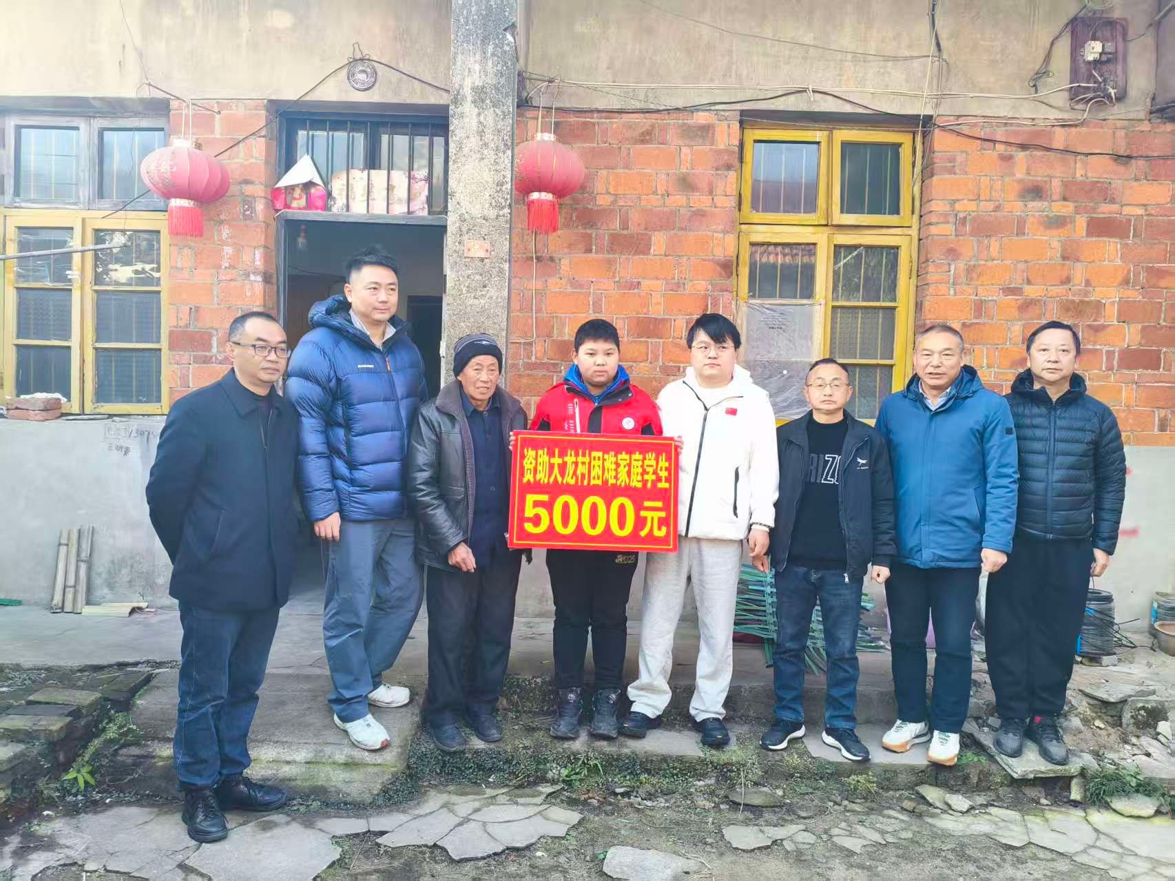 为深入实施“百校联百县兴千村”行动,切实关怀困难学生成长,汇聚社会爱心力量。12月27日,在校党委的坚强领导下,我校团委主动联络爱心企业负责人李廷雨先生,携手前往大龙村开展“爱心助学 情暖冬日”捐资活动。此次活动精准对接大龙村两户困难学生家庭,为他们送去了冬日的温暖与新年的祝福。