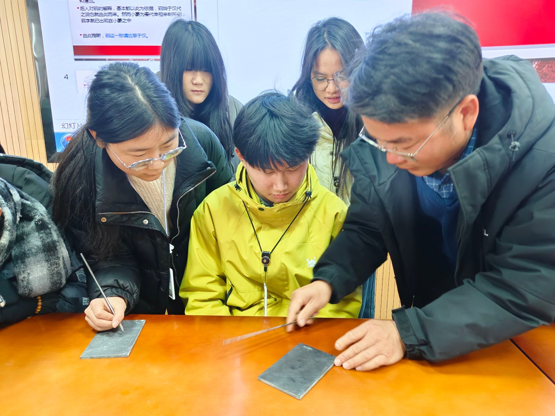 讲座现场互动频频,学生们围绕歙砚雕刻的工具使用、技法要领、创作心得等问题踊跃提问。胡慧君耐心解答,并现场指导部分学生进行简易雕刻体验,让师生近距离感受非遗技艺的魅力。他鼓励在场学子:“在专注专业技能的同时,主动接触、了解并传承中华优秀传统文化,让古老技艺在新时代焕发新的光彩。”