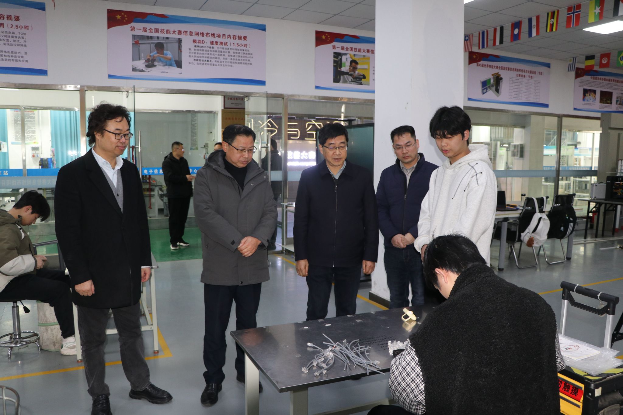 座谈会后,胡捍东代表学校与挂职干部边昊同志亲切交谈并致以慰问,同时对后续挂职工作提出了期望。随后,在纪昌国的陪同下,我校一行参观了安徽金寨职业学校的实训基地,进一步直观了解了该校的实践教学条件与办学实力。