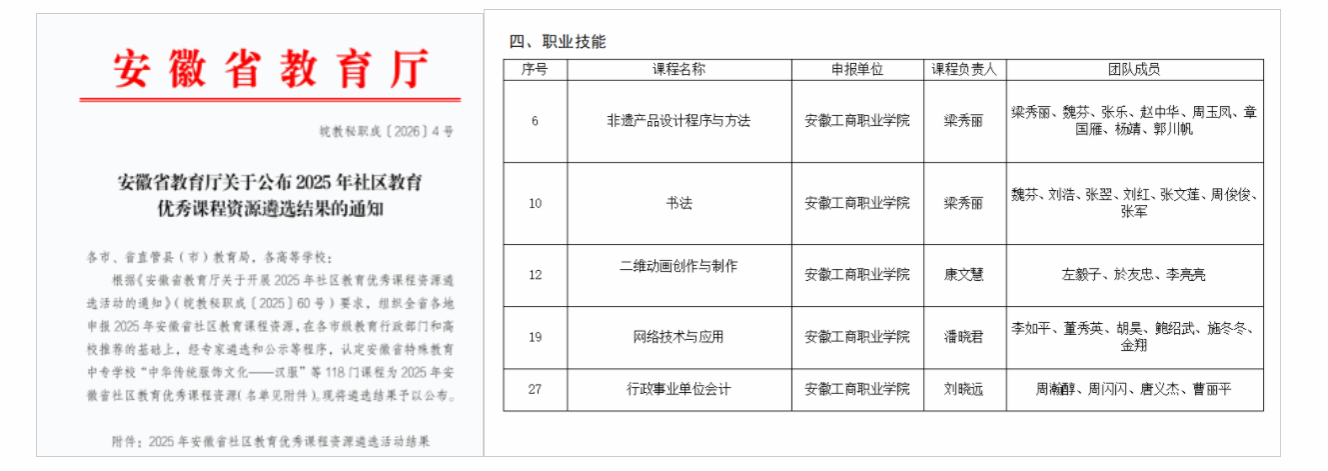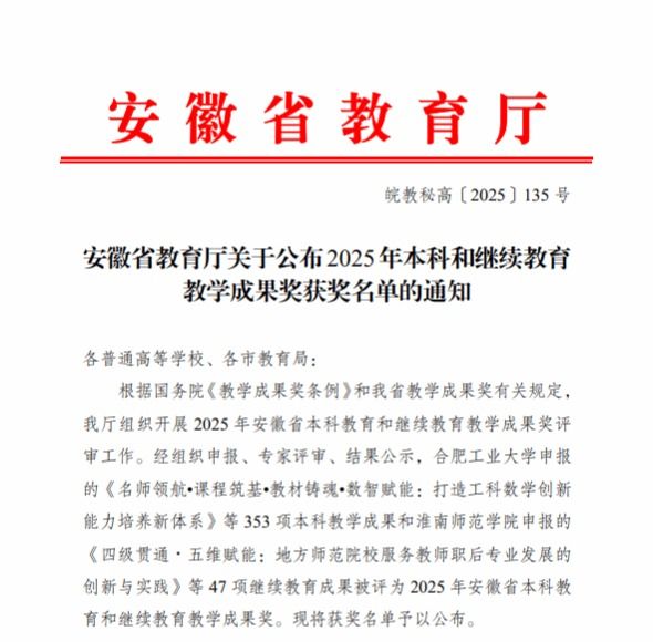 近日,安徽省教育厅正式公布《2025年本科和继续教育教学成果奖获奖名单的通知》,我校继续教育成果《多元协同、数智赋能、德技并修:面向新兴产业与乡村振兴的终身学习模式融合创新与实践》荣获二等奖,该成果聚焦终身学习模式的创新,反映了我校在相关领域的改革与实践进展。