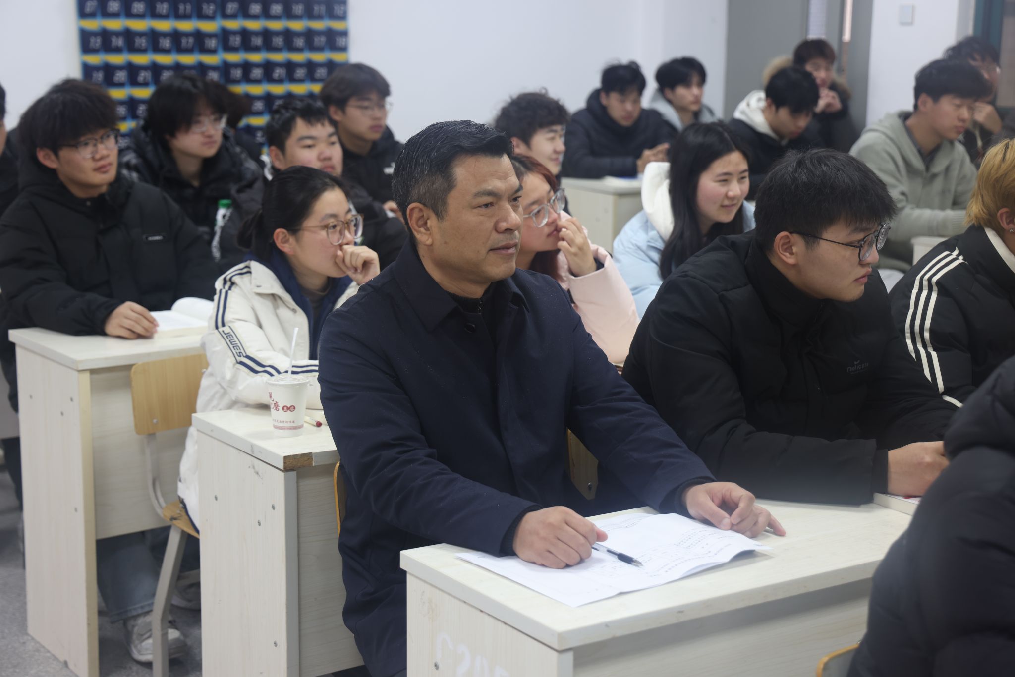 课后,校领导与师生进行深入交流,对任课教师扎实的专业素养和严谨的教学态度予以充分肯定,期望教师持续优化教学方式、创新教学模式,不断提升课堂吸引力与育人实效。同时,校领导与学生进行亲切交谈,详细了解同学们的学习适应情况、课程体验与实际需求,勉励同学们珍惜学习时光,坚定理想信念,勤学善思、笃行实干,努力成长为全面发展的新时代青年。