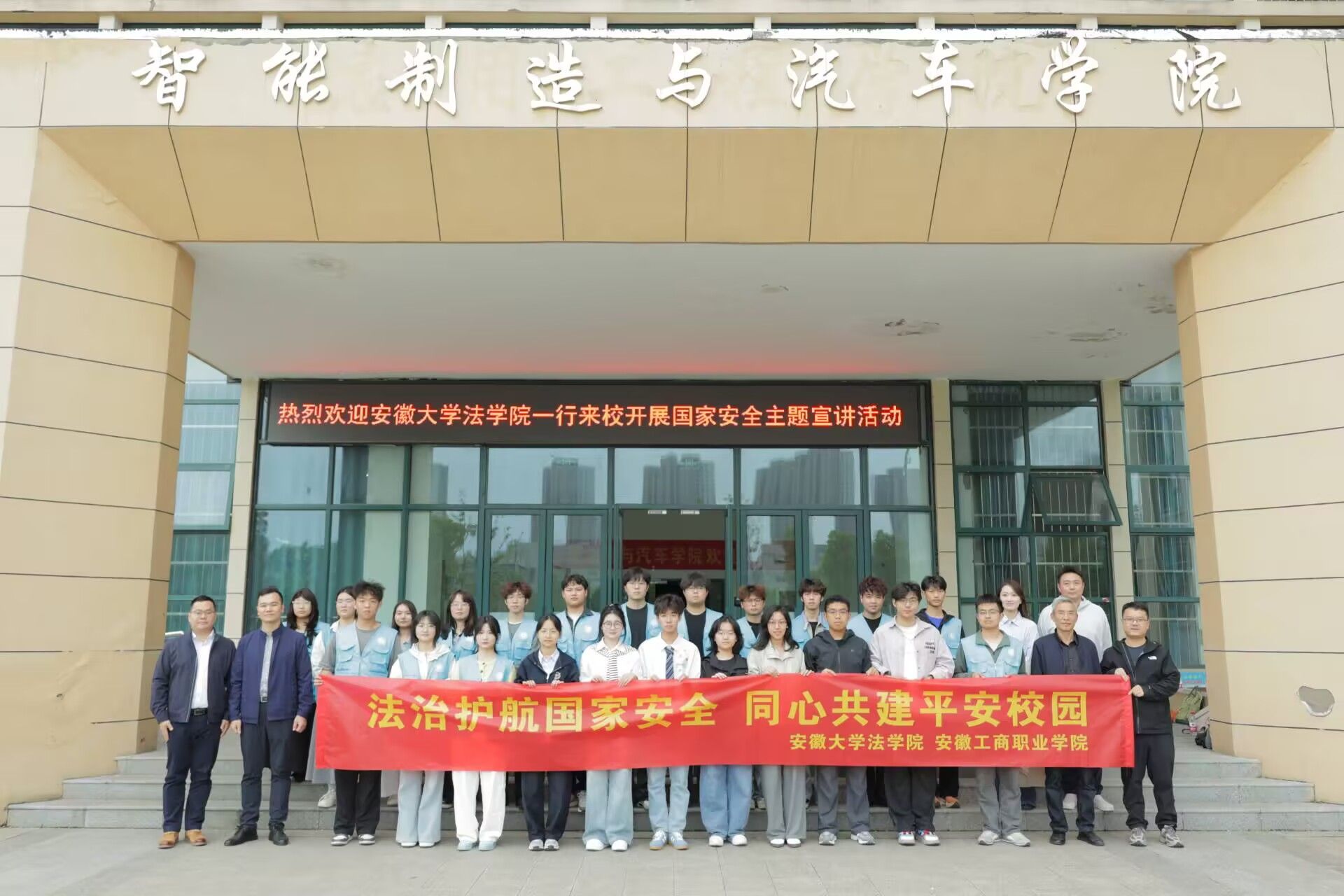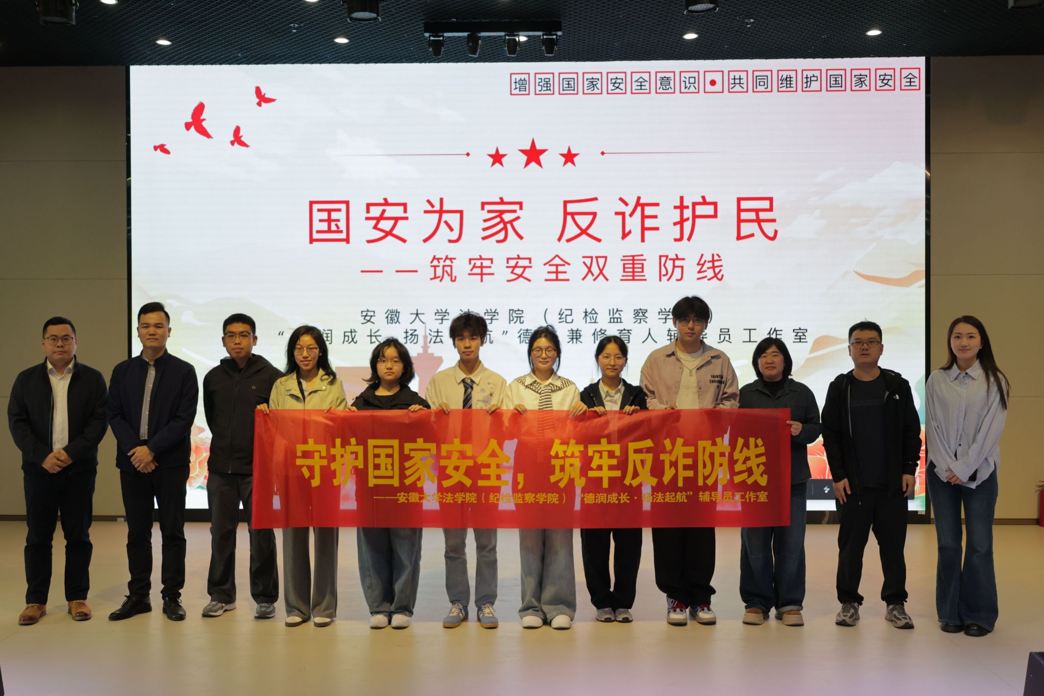 为深入学习贯彻总体国家安全观,在第十一个全民国家安全教育日来临之际,4月15日,安徽大学法学院师生一行来校开展以《国安为家 反诈护民》为主题的国家安全宣讲活动。我校师生代表共300余人参加活动,共同筑牢校园安全与法治思想防线。