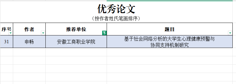 近日,教育部高校思想政治工作队伍培训研修中心公布了2025年高校思想政治工作优秀文章征集活动评选结果,我校管理学院专职辅导员申畅撰写的论文《基于社会网络分析的大学生心理风险精准识别与干预机制研究》获评优秀论文。