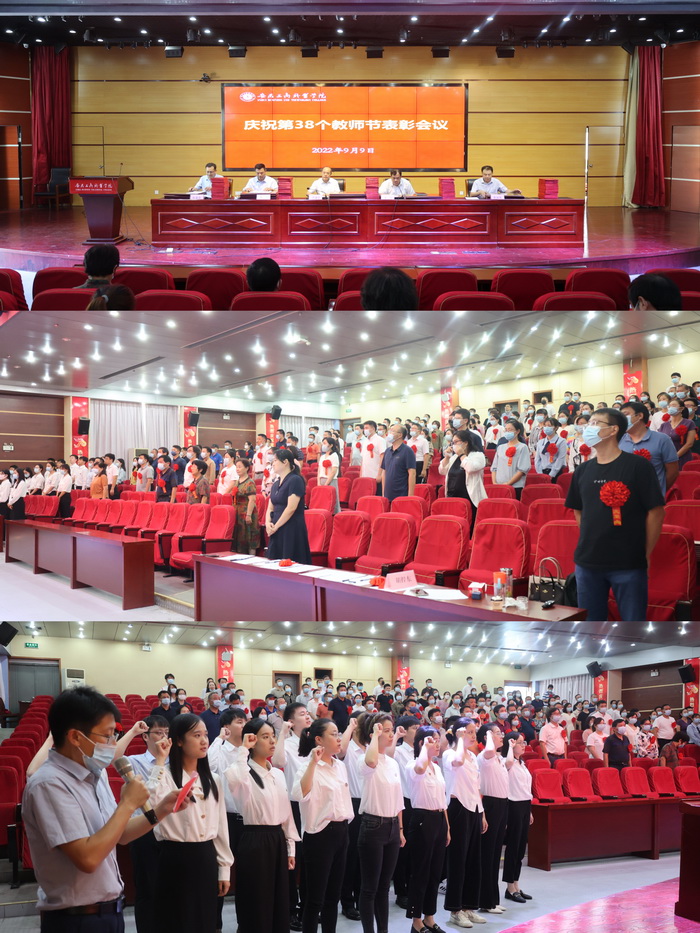 9月9日下午,学院在双凤校区学术报告厅,举办庆祝第38个教师节表彰大会。院领导齐建平、李雪、陈行、黄继胜、陈章奇出席大会。科级以上干部,教研室主任、副主任,2022年新进教师代表,学生代表及受表彰的人员参加了大会。大会由党委副书记、院长李雪主持。